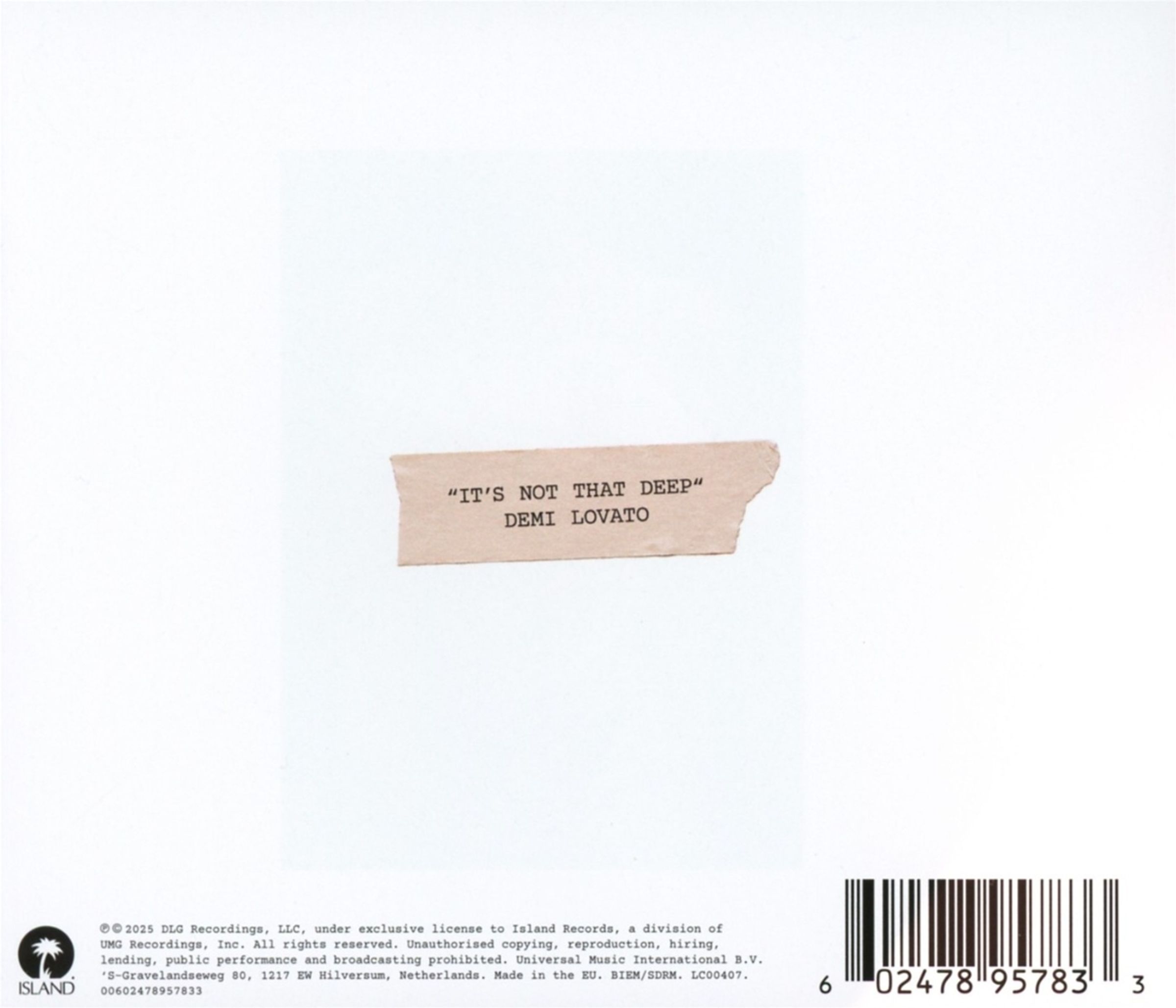 »It's Not That Deep« zeigt Demi von ihrer strahlendsten Seite – sie kehrt zu ihrer früheren Unbeschwertheit zurück und präsentiert elf Dance-Pop-Hymnen, die wie geschaffen sind für lange Nächte und Tanzflächen. Das von Zhone produzierte Album strahlt Selbstbewusstsein, Freiheit und Freude aus, angeführt von der eleganten Single »Fast« und dem mitreißenden »Here All Night«.