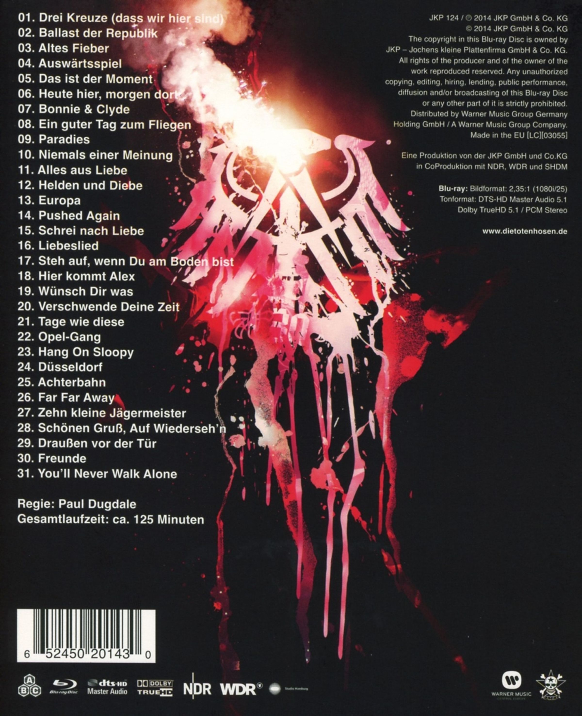 Die Hörproben gehören zum Artikel Die Toten Hosen: Der Krach der Republik - Das Tourfinale: Live (DVD + Blu-ray + 2 CD) (Limited Edition Earbook) (DVD). Das Tracklisting kann bei diesem Artikel ggf. abweichen.