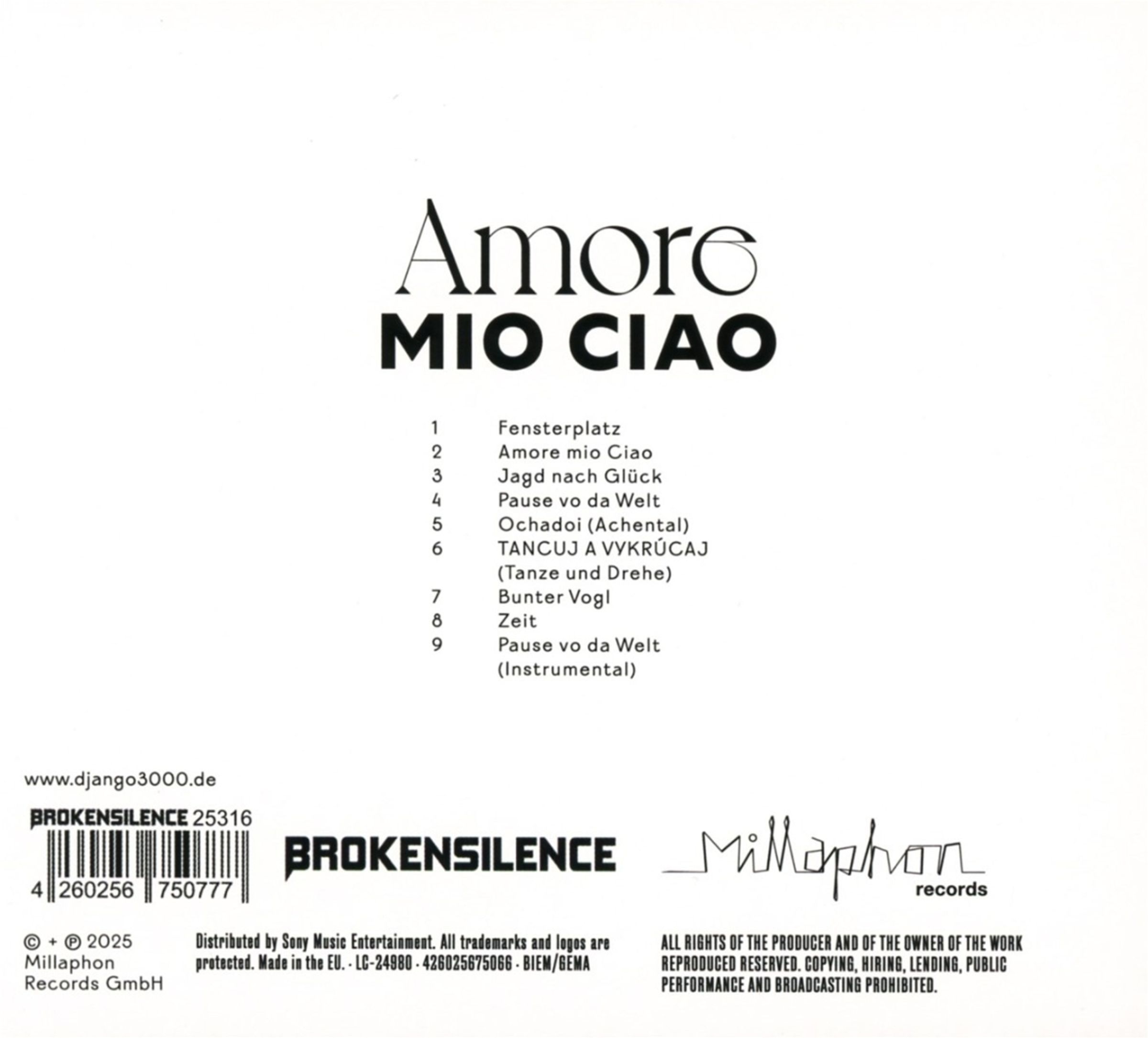 »Amore Mio Ciao« ist kein Album zum Nebenbeihören. Es ist ein Erlebnis voller Sonne, Schweiß, Schmerz und magischer Momente, bei denen man mitsingt, tanzt und lacht. Django 3000 beweisen erneut, dass das Leben zu kurz für leise Musik ist – und dass man jeden Ton feiern sollte. Ein Album voller Energie, Humor und echter Gefühle, das Lust auf Bühne, Biergarten und Sternenzelt zugleich macht.