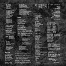 Die einzigartigen Texte der Band umfassen introspektiv und unaufgeregt das ganze Elend menschlicher Existenz im Kleinen wie im Großen und Ganzen. Neben vielen ausladend melodischen Songs stehen ruppige Hardcore-Feger wie »Wundkörper« oder »Kleiner Schauspielführer«.