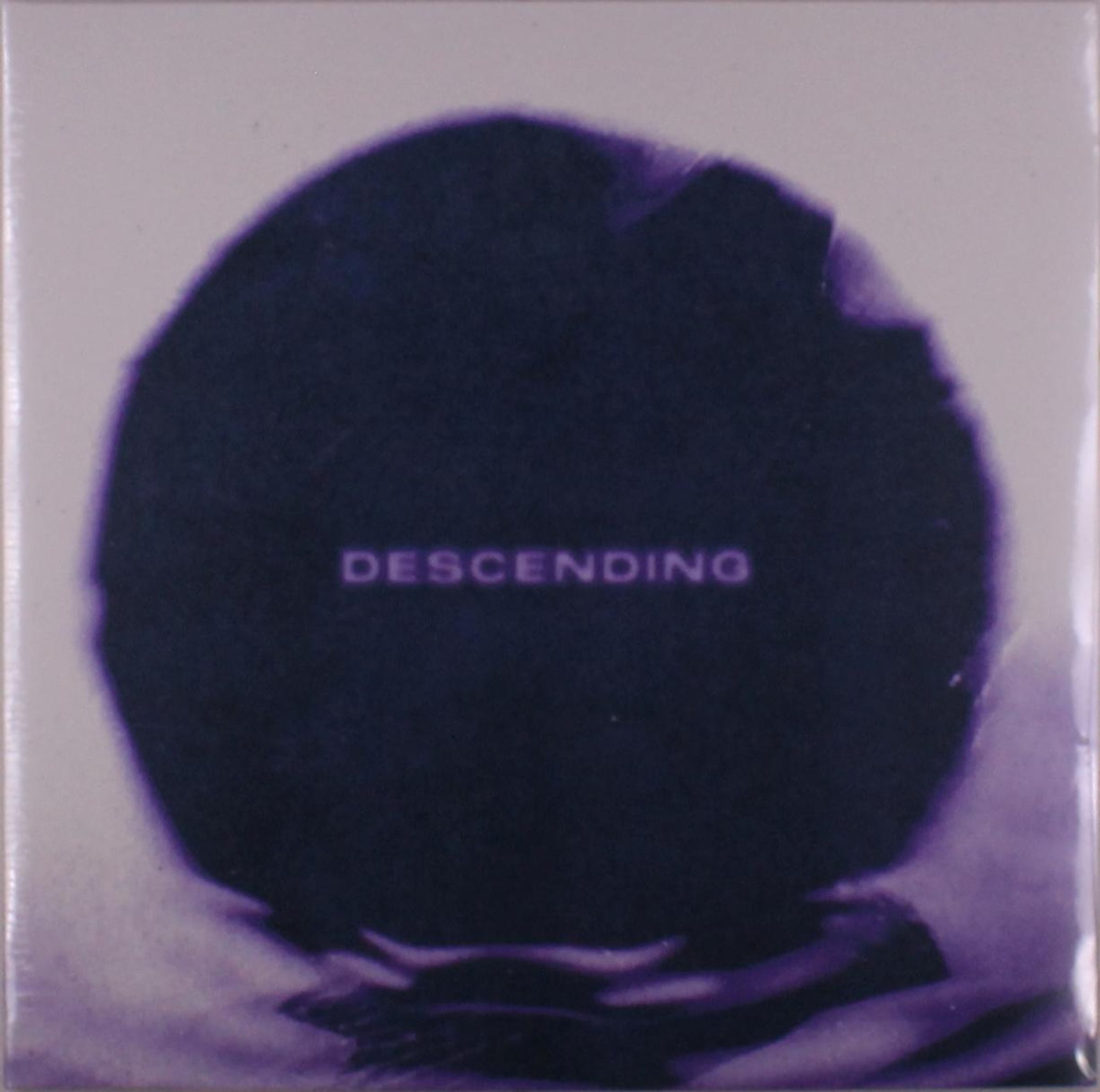 Text "DESCENDING" in der Mitte, lila Kreis auf hellgrauem Hintergrund, unscharf., LP