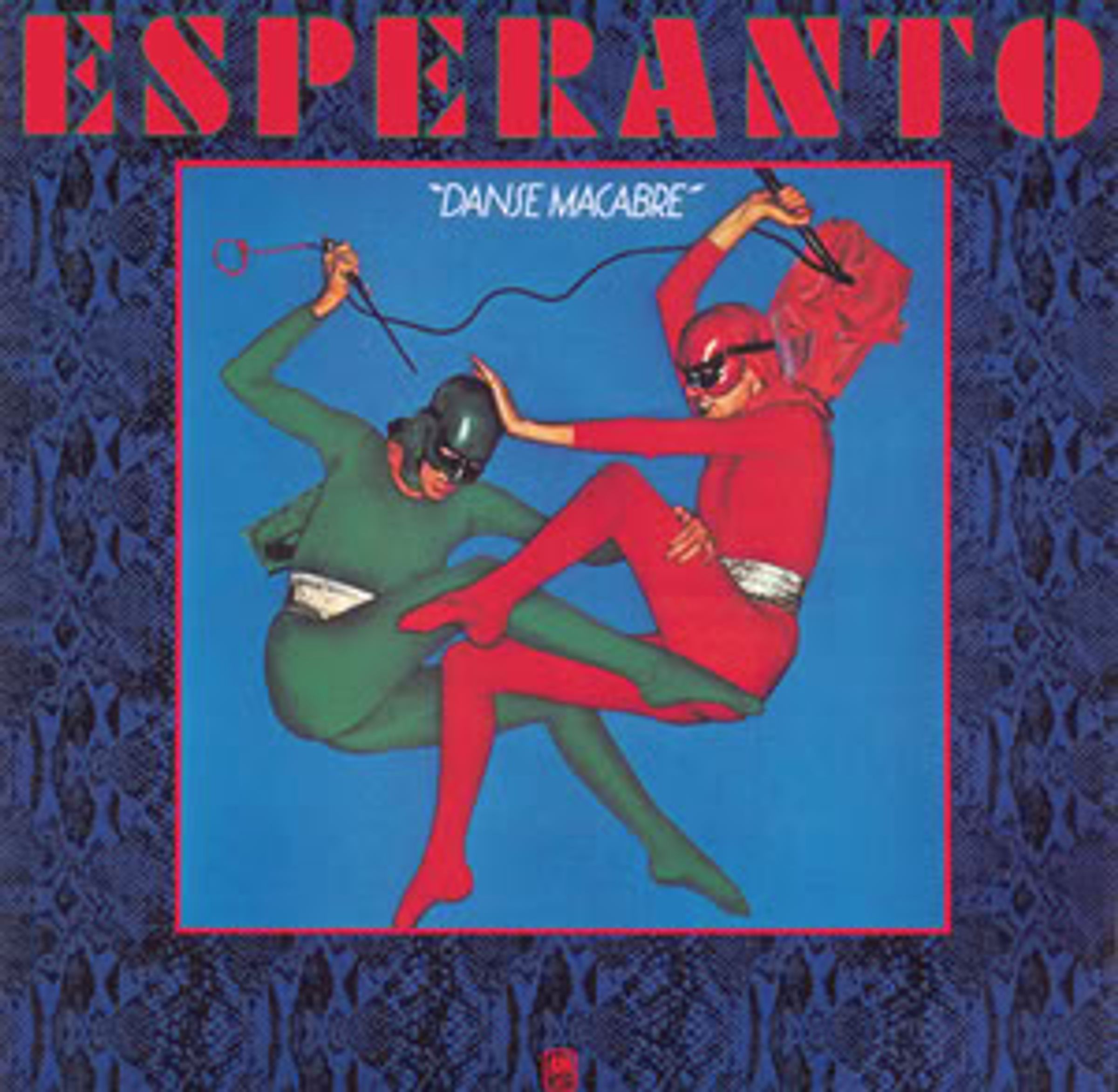 Oben steht "ESPERANTO", darunter "DANSE MACABRE". Illustration von zwei maskierten Figuren im Tanz., CD