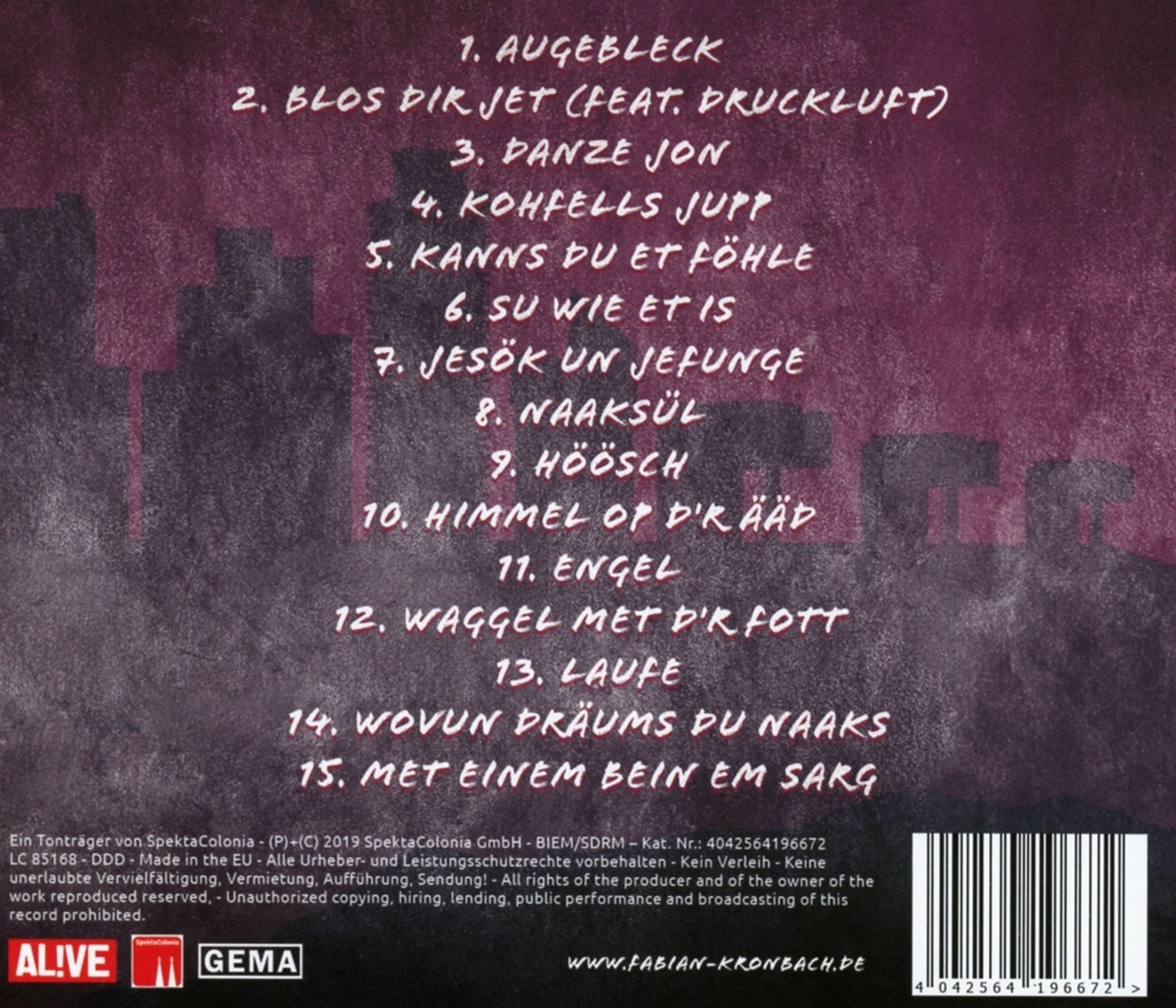 Kölsche Pop / Rock-Musik gepaart mit Texten, die zum Mitsingen und Nachdenken anregen unter diesem Motto schreibt und komponiert Fabian Kronbach seine Songs, die den Musikgeschmack von Jung und Alt treffen. Geprägt von der Liebe zu seiner Heimatstadt singt er ganz bewusst op Kölsch und vermittelt somit authentisch das typisch kölsche Lebensgefühl.