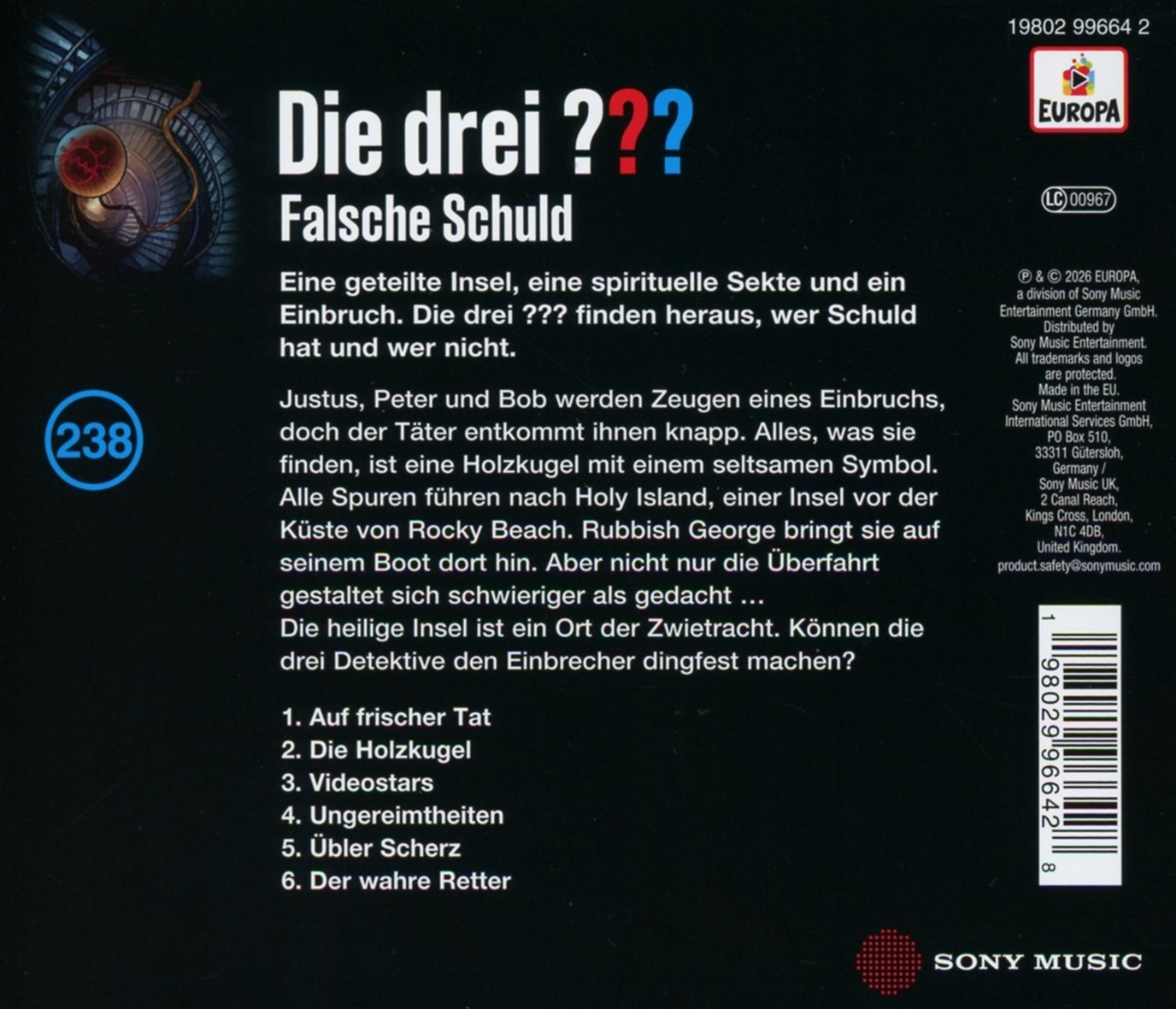 Das war aber knapp! Fast hätten Justus Jonas, Peter Shaw und Bob Andrews den Einbrecher noch erwischt. Am Tatort finden die Freunde eine Holzkugel. Was ist das für ein seltsames Symbol? Die Spuren führen die drei Jung-Detektive zu einem bekannten Sektenführer. Er lebt auf einer Insel vor der Küste von Rocky Beach. Als sich die drei ??? dort umsehen, treffen sie auch auf den Erzfeind des Sektenführers. Er lebt auf der anderen Seite der Insel! Die Detektive sammeln Hinweise, vergleichen Ergebnisse und kombinieren: Wer hat den Einbruch begangen?