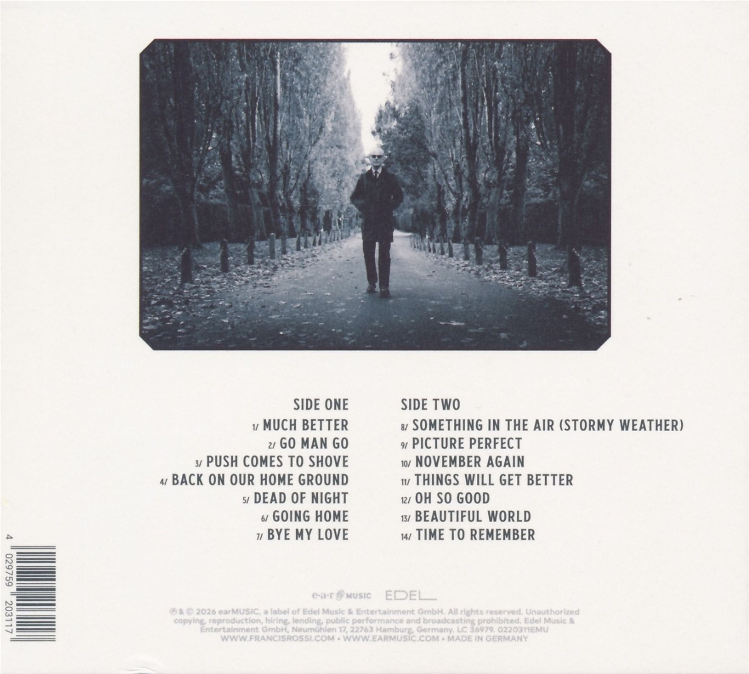 Die Songs reichen vom treibenden Opener »Much Better« und dem boogielastigen »Go Man Go« über bluesige Nummern wie »Back On Our Home Ground« bis hin zu nachdenklichen Momenten wie »Time To Remember«. Alle Songs zeigen: Rossi klingt direkter, ehrlicher – und lebendiger denn je.