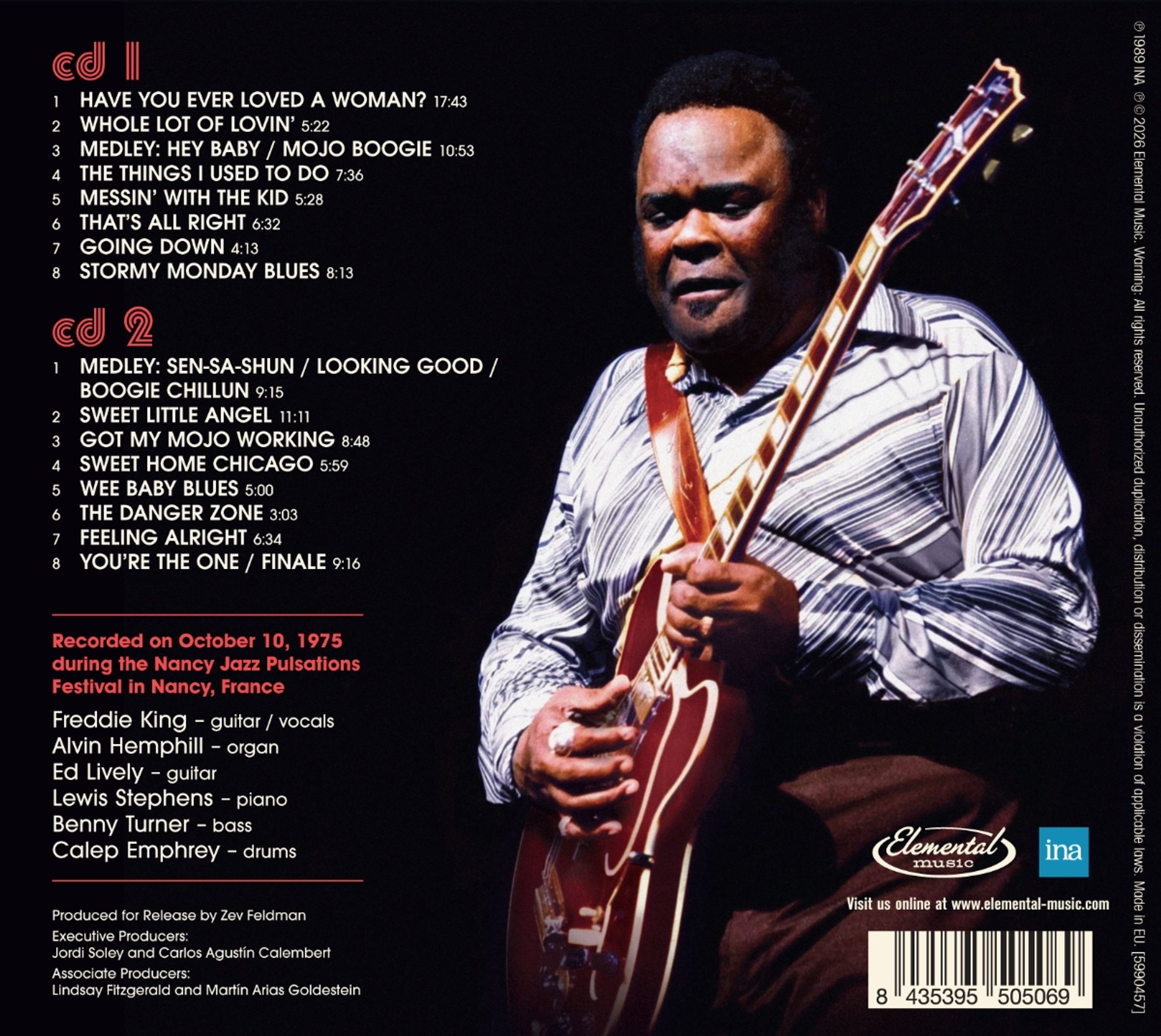 Freddie King – Live at Nancy Jazz Pulsations, 1975 ist die erste offizielle Veröffentlichung des kompletten Konzerts des legendären Bluesmusikers beim berühmten Nancy Jazz Pulsations Festival in Frankreich. Aufgenommen am 10. Oktober 1975, zeigt diese mitreißende Performance Freddie King in Höchstform seiner späten Karriere – kraftvoll, gefühlvoll und mitreißend in jeder Note.