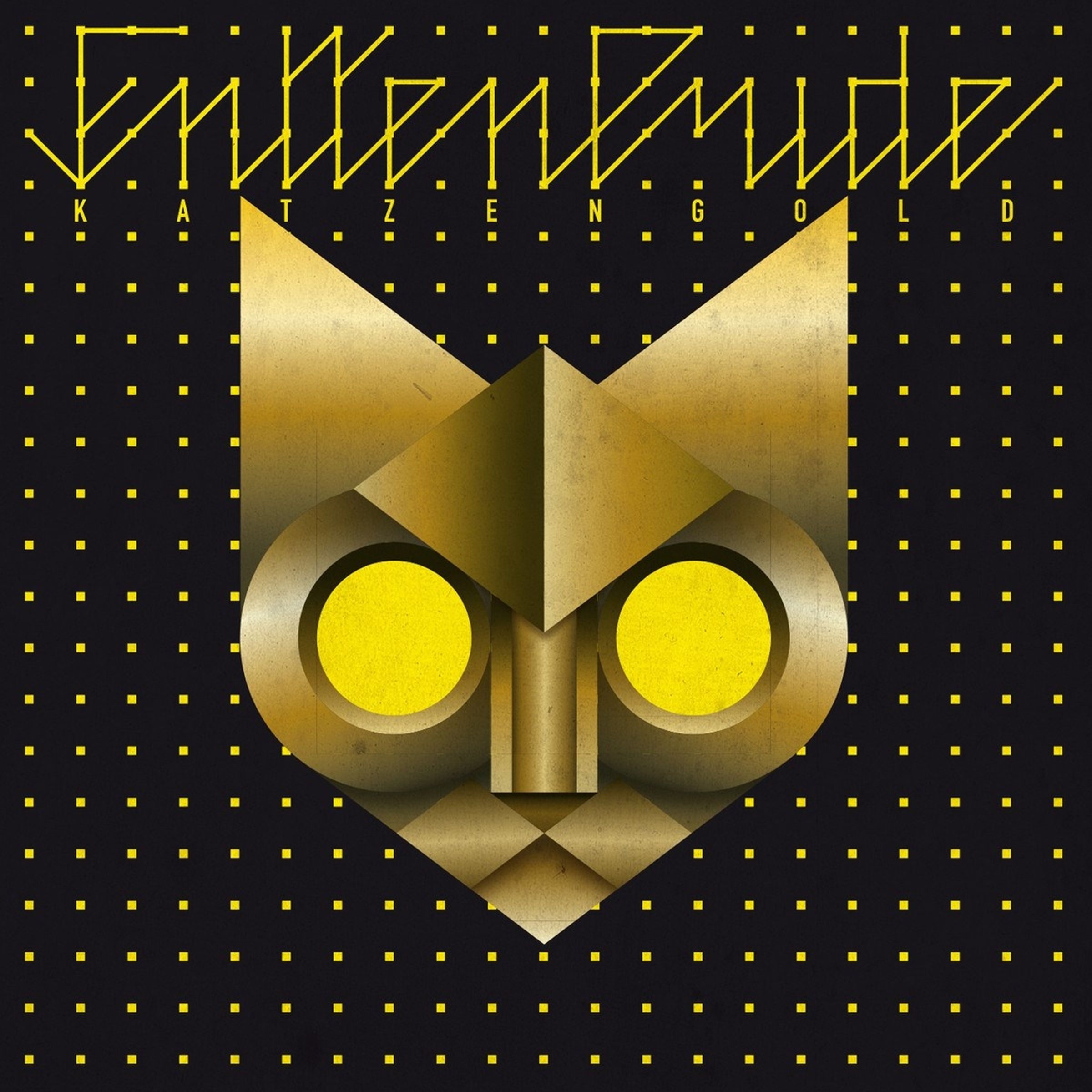 Text: "Gullendude KatzenGold". Illustration: Geometrischer Katzenkopf in Gold- und Gelbtönen auf schwarzem, gepunktetem Hintergrund., 2 LPs