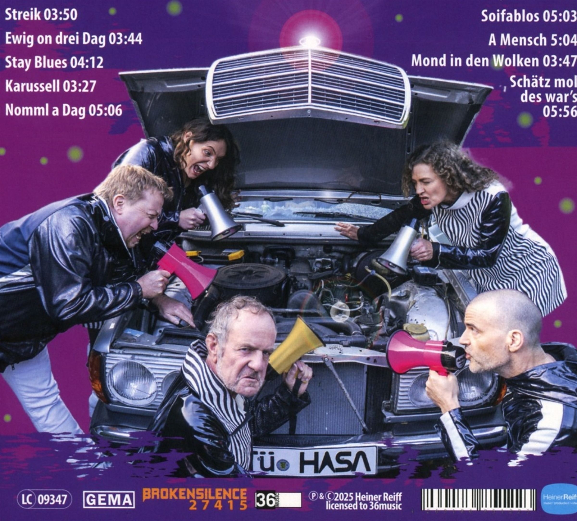 Heiners All-Star-Affaktion (HASA) beweisen seit 2017, dass tanzbarer Retro-Futurismus und Dialektpoesie keine Gegensätze sind, sondern ein eigenständiges Genre formen: Space-Pop! Im HASA-Kosmos verschmelzen Jazz, Rock, Blues, Reggae und Funk zu einem organischen Groove-Gebilde mit klarer 70er-Referenz, jedoch ohne Nostalgie-Filter. Die Lyrics im schwäbischen Dialekt funktionieren dabei nicht nur als Identitätsmarker, sondern als ästhetisches Instrument: lautmalerisch verspielt, dadaistisch gebrochen oder pointiert aus dem prallen Leben gegriffen – oft mit Gedichtcharakter, immer mit Augenzwinkern. Die begleitenden Comics stammen von Dieter Hermenau; vollständige Songtexte dienen als Verständnishilfe für einheimisches wie außerschwäbisches Publikum. Ein Service, der nicht nur unterhält, sondern auch kulturelle Brücken baut. Seit der Bandgründung im Sommer 2017 geht es senkrecht in neue Sphären: zahlreiche Konzerte im süddeutschen Raum und die Auszeichnung mit dem Kleinkunstpreis Baden-Württemberg 2022, markieren wichtige Meilensteine.