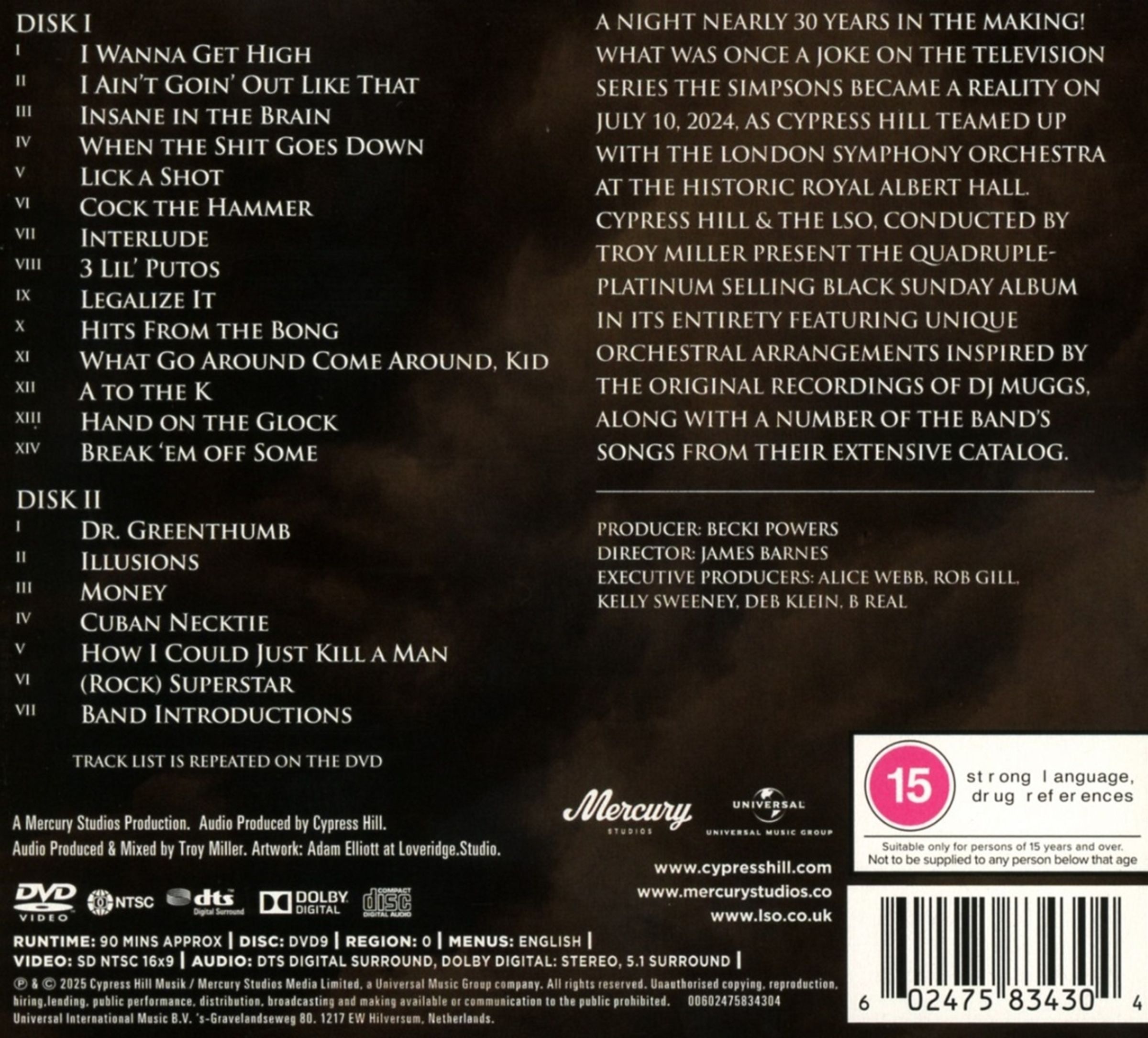 Ein Abend, der fast 30 Jahre auf sich warten ließ! Was einst ein Witz in der Fernsehserie »Die Simpsons« war, wurde am 10. Juli 2024 Wirklichkeit, als Cypress Hill zusammen mit dem London Symphony Orchestra in der historischen Royal Albert Hall auftrat.