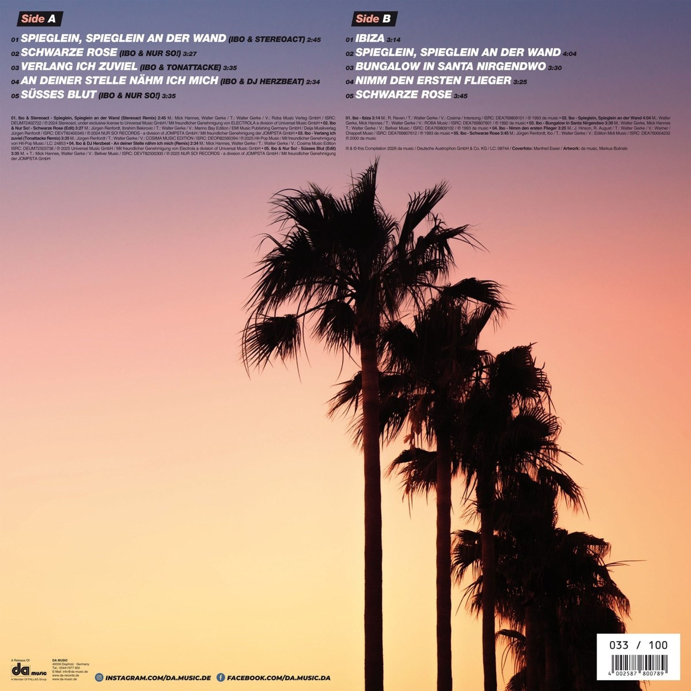 Mit "Ibiza Beach Beats" kommt IBO direkt auf den Plattenteller. Diese exklusive Vinyl vereint die unvergesslichen Klassiker mit modernen, angesagten Remix-Versionen renommierter DJs und Produzententeams. Perfekt für alle, die Schlager lieben und Ibiza-Vibes spüren wollen.