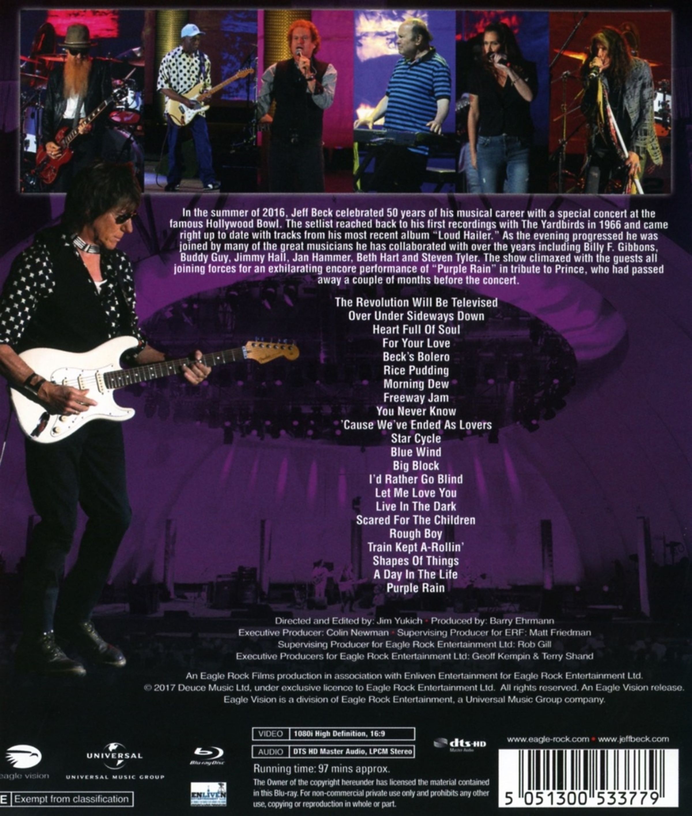 Zahlreiche Klassiker und Hits gab der Gitarrenvirtuose an diesem Abend zum Besten, darunter »Cause We’ve Ended As Lovers«, »Big Block«, »For Your Love«, »Beck’s Bolero«, »Over Under Sideways Down«, »A Day In The Life«, »Blue Wind« und viele mehr. Ein Highlight der Show ist außerdem das Prince-Cover »Purple Rain«. Der Künstler war wenige Monate zuvor gestorben. Das gesamte Tracklisting von »Jeff Beck: Live At The Hollywood Bowl« finden Sie im Folgenden.