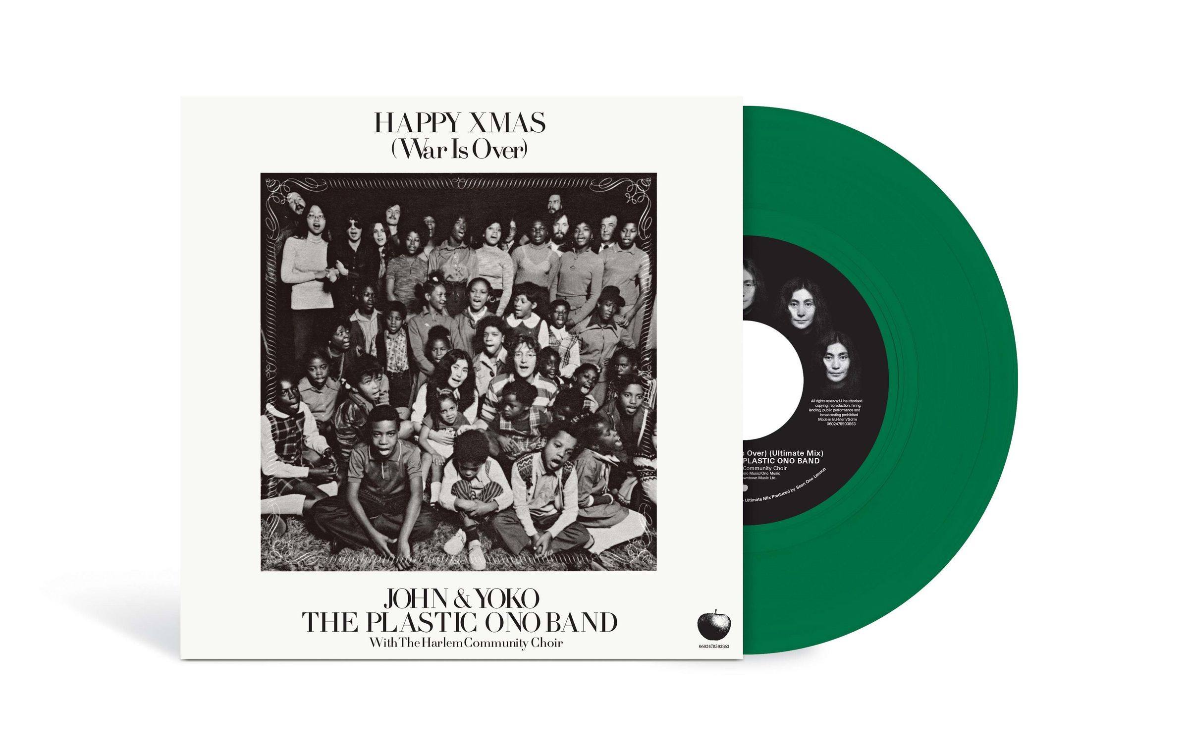 John Lennons Weihnachtsklassiker „Happy Xmas (War Is Over)“ als 7"-Single aauf Evergreen Vinyl erhältlich.