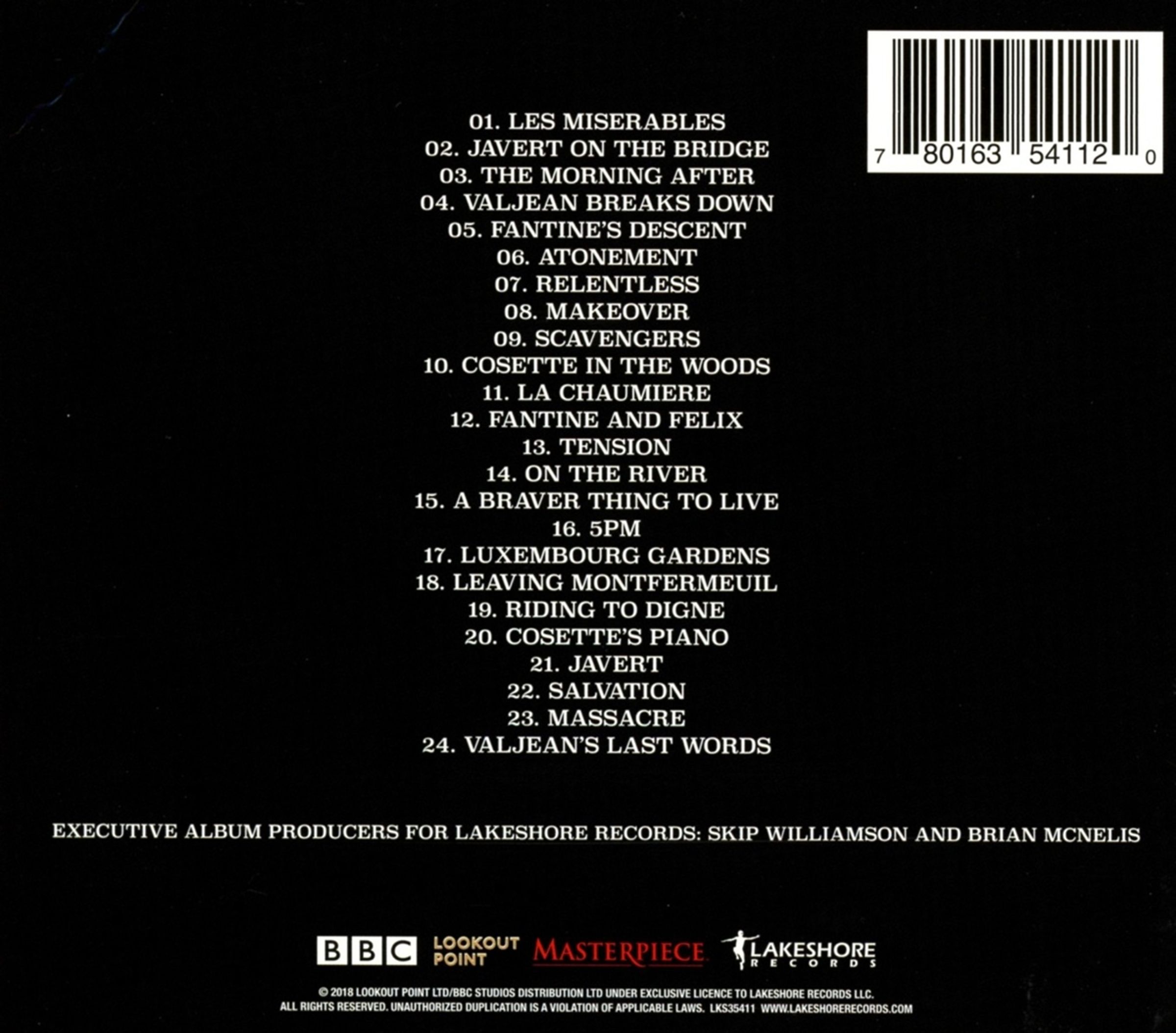Der John Murphy (Sunshine, 28 Weeks Later, Lock, Stock and Two Smoking Barrels, Kick-Ass) komponierte Score zur 6-teiligen BBC Miniserie von Regisseur Tom Shankland (The Missing, House of Cards), eine Fernsehadaption von Victor Hugo's bekanntem Roman. Ein TV-Drama und nicht zu verwechseln mit dem Musical.