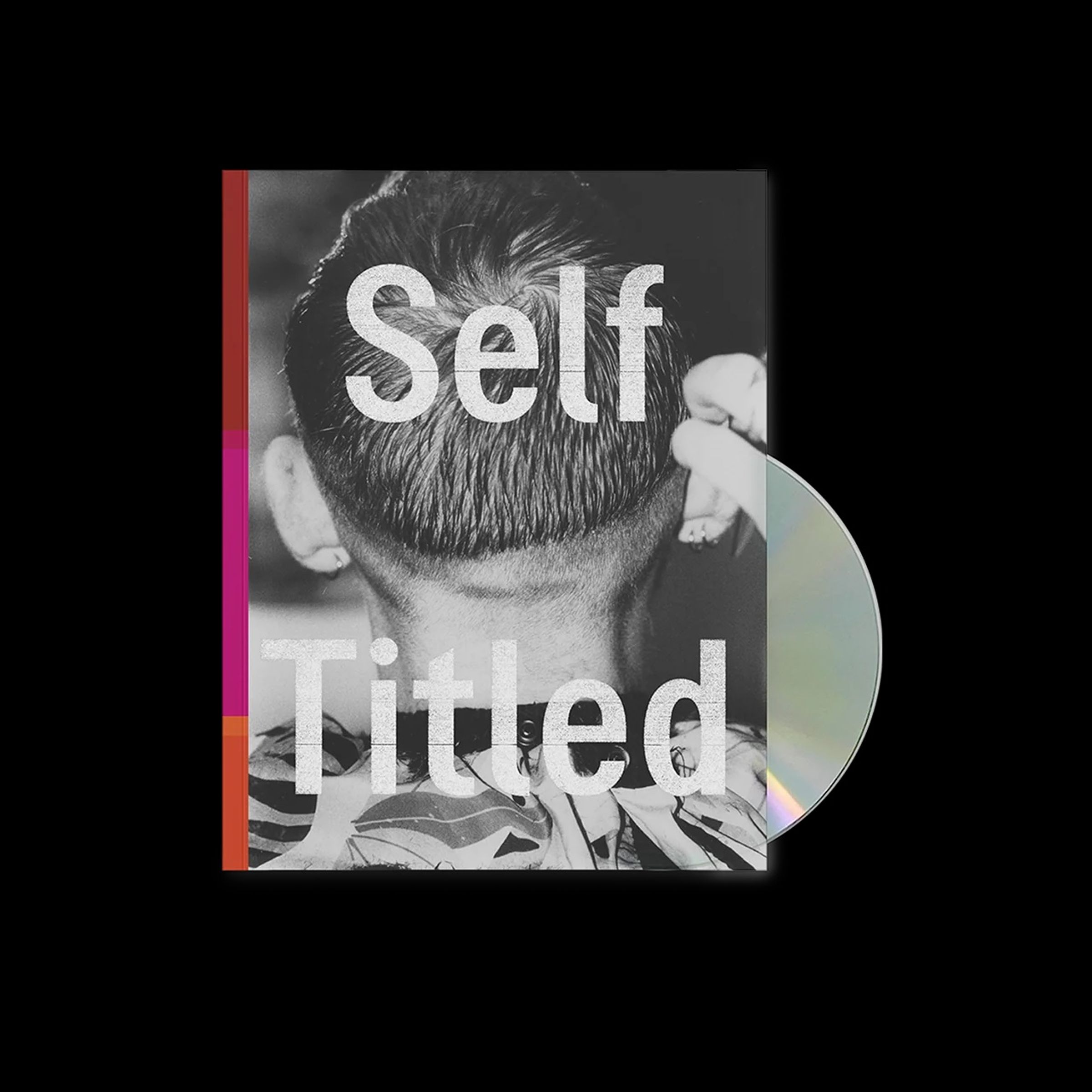 Text: "Self Titled." Ein schwarz-weißer Hinterkopf wird rasiert, begleitet von einem teils verdeckten CD-Logo., CD
