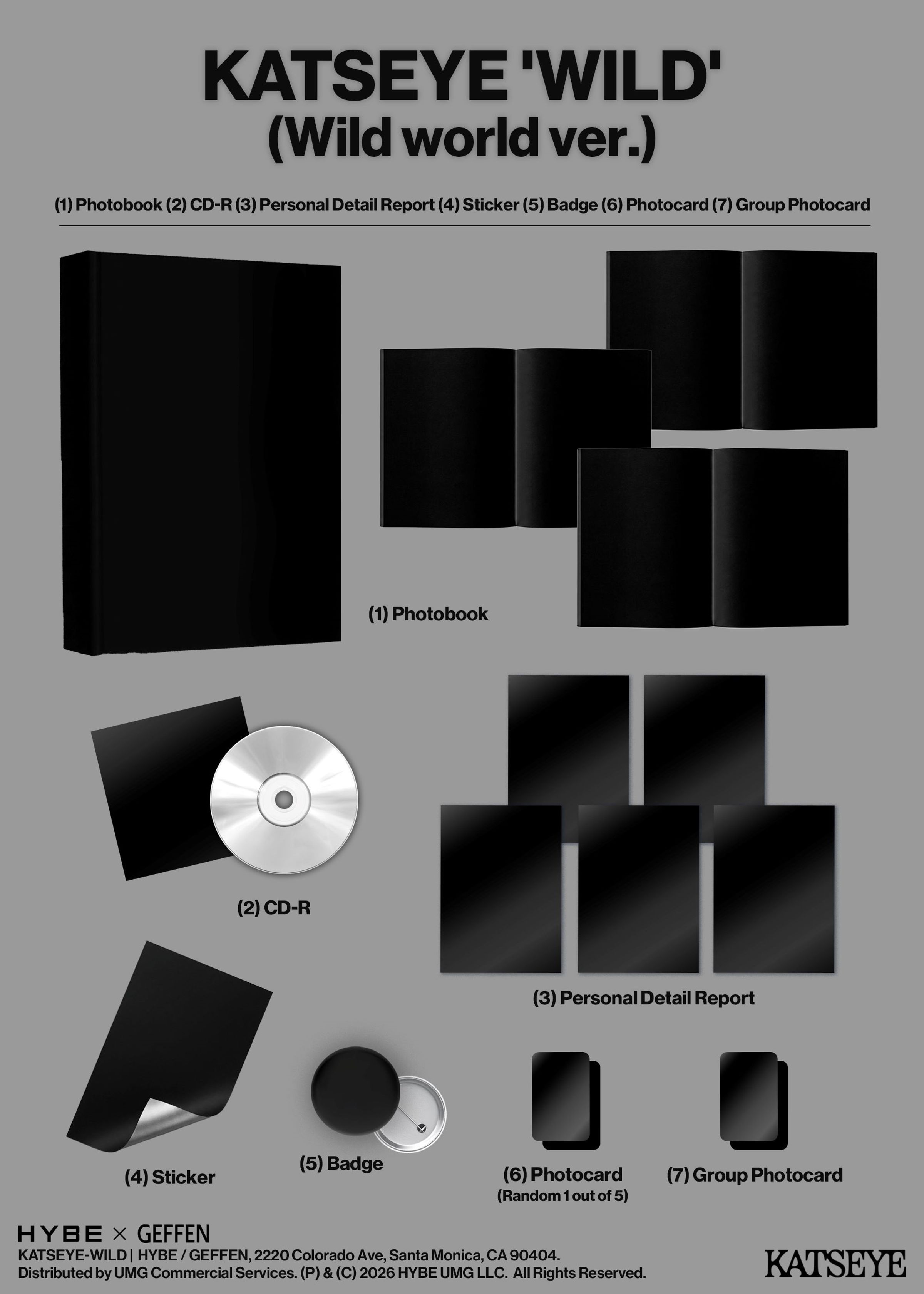 Photobook, CD-R, Personal Detail Report, Sticker, Badge, Group Photocard, 1 Photocard (Random, 1 out of 5, Standard CD Wild world ver. Photo)