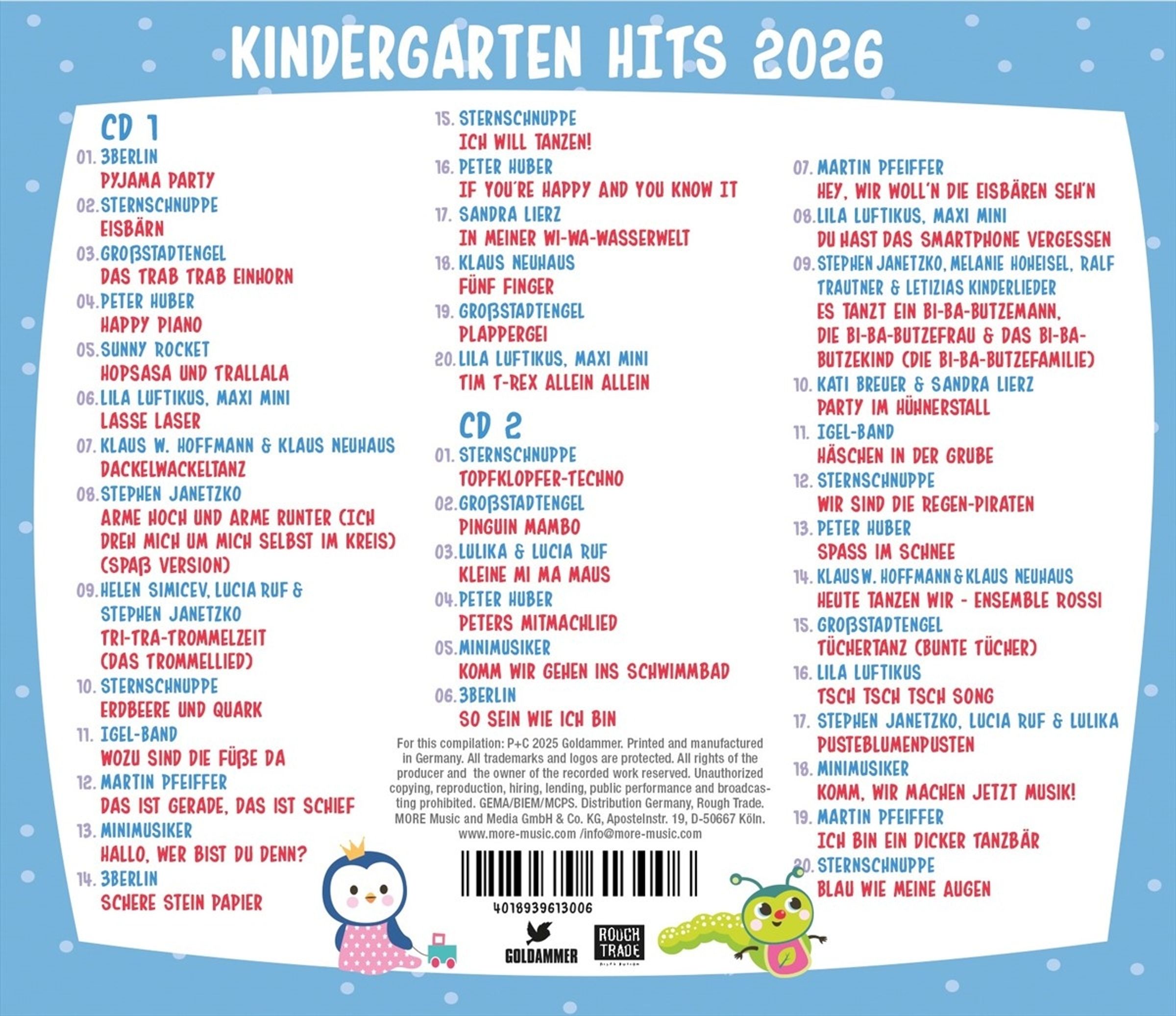 2026 KINDERGARTEN HITS. Dackelwackeltanz, Topfklopfer-Techno, Pinguin Mambo. Bunte Tiere feiern miteinander., 2 CDs