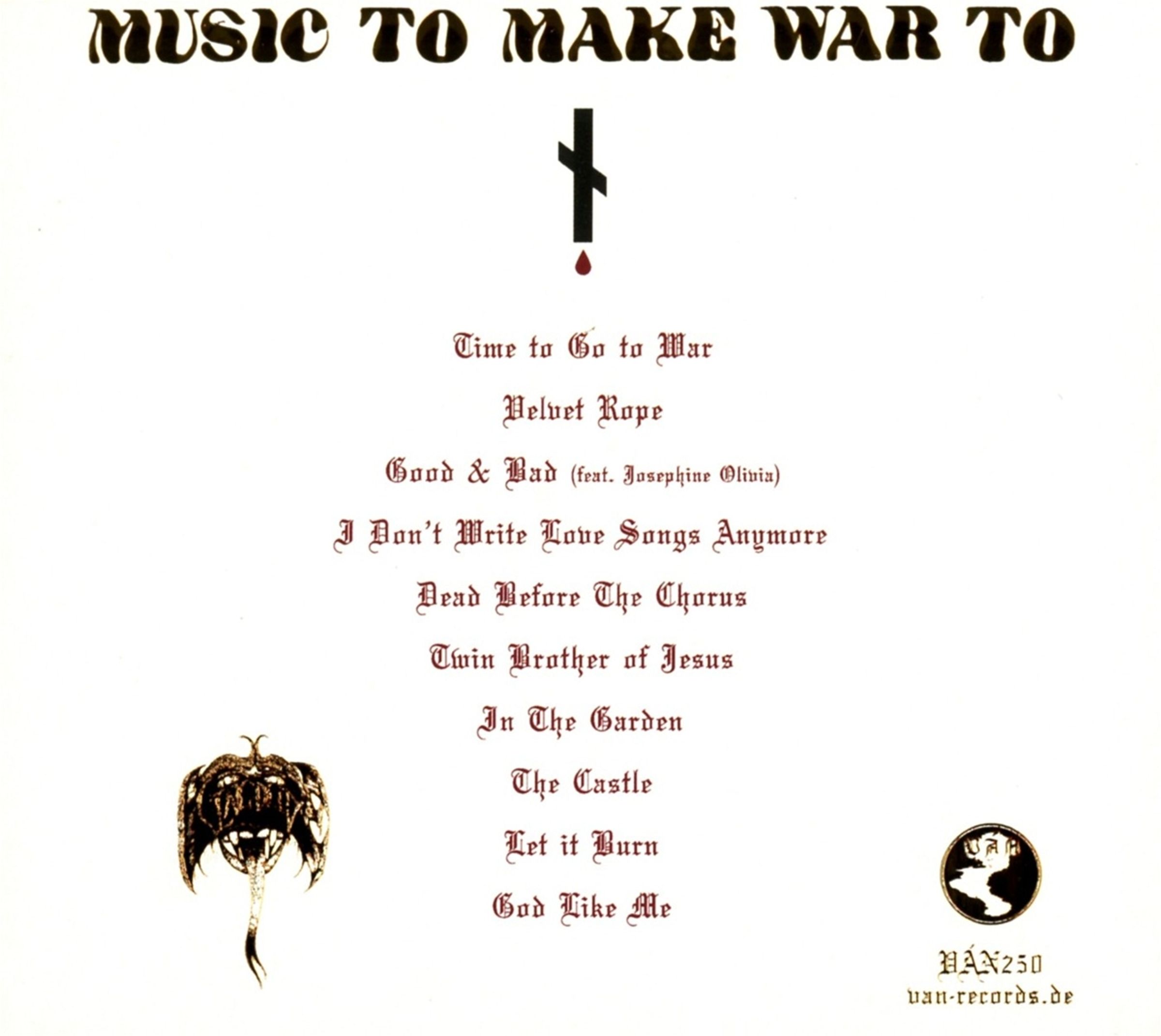 Thomas Jefferson Cowgill, kurz TJ Cowgill) präsentiert uns als King Dude das Album »Music To Make War To«. Nach dem gefeierten Vorgänger »Sex« von 2016 beehrt uns der Künstler endlich wieder mit einem neuen Output. Mit seinem speziellen Mix aus Dark/Folk Rock kann auch das neue Album in allen Belangen überzeugen. Für Fans von Johnny Cash!