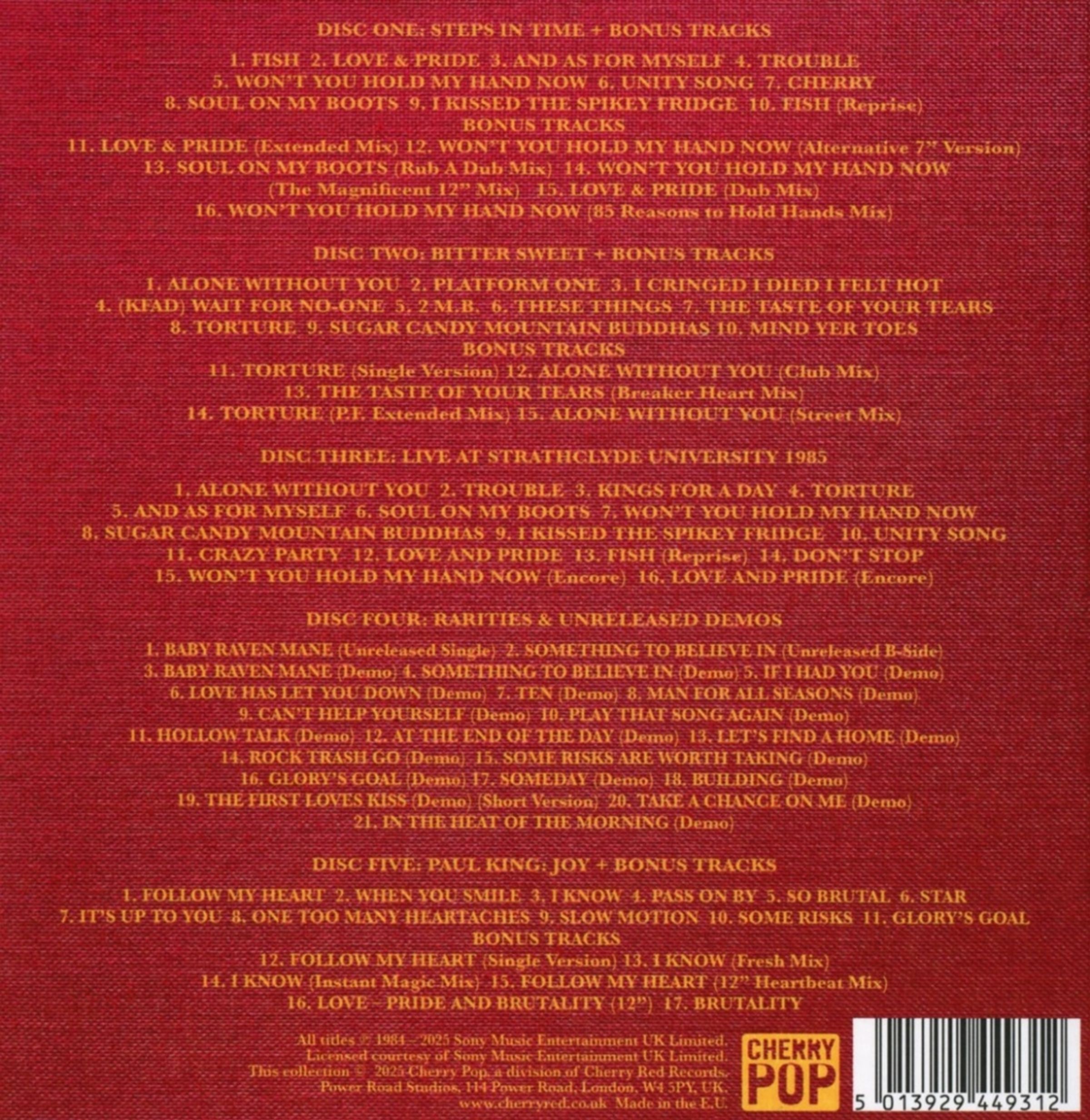 Angeführt vom charismatischen, toupierten Paul King stürmte das Quartett aus Coventry 1985 mit „Love & Pride“ die Charts, gefolgt von „Won’t You Hold My Hand Now“ und „Alone Without You“, bevor es mit „Bitter Sweet“ ein komplexeres und introspektiveres Nachfolgealbum veröffentlichte. Beide Alben werden hier vollständig präsentiert, ergänzt durch eine großzügige Auswahl an Extended Mixes, alternativen Versionen und seltenen Single-Remixen.