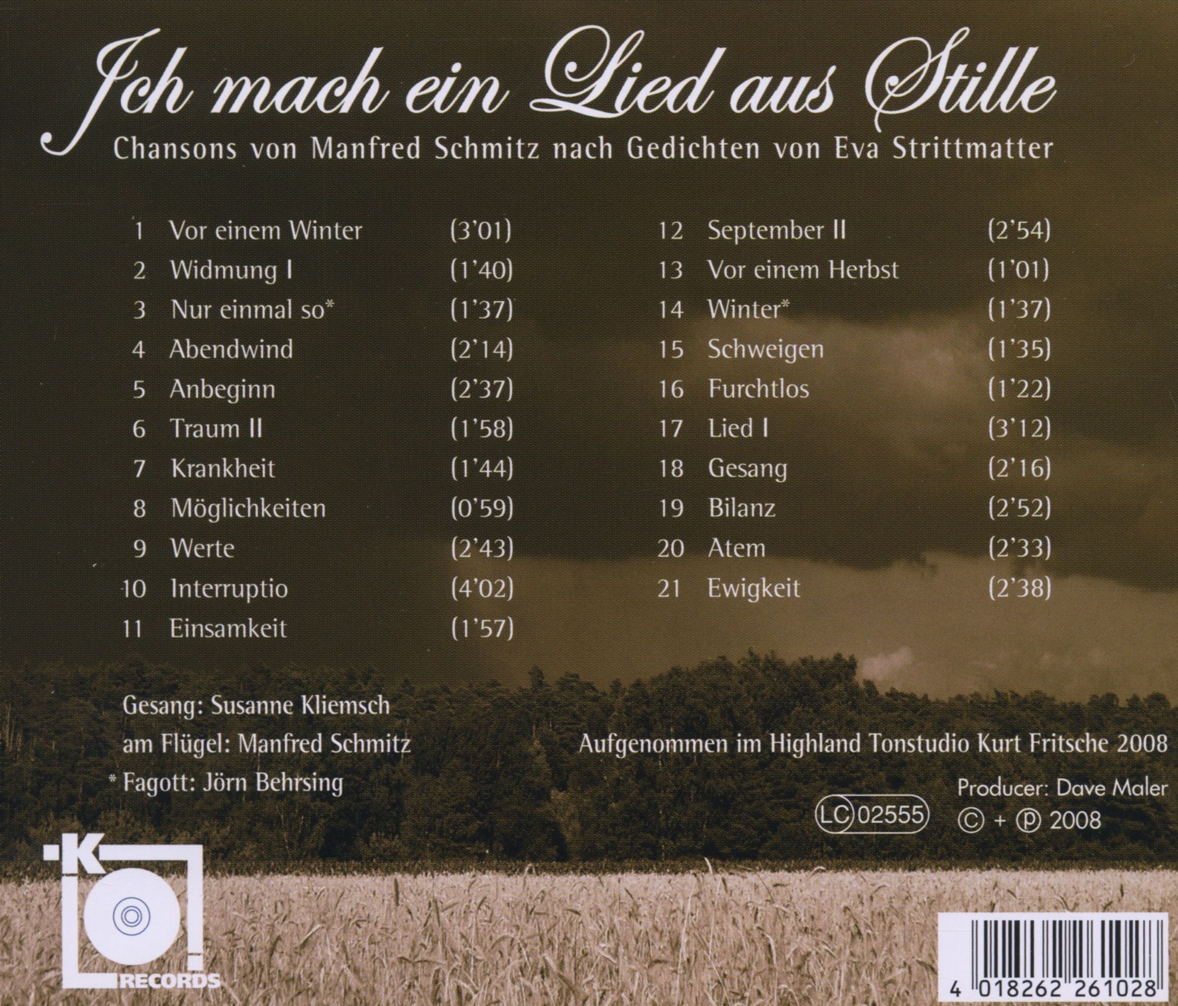 Manfred Schmitz & Susanne Kliemsch: Ich mach ein Lied aus Stille on CD