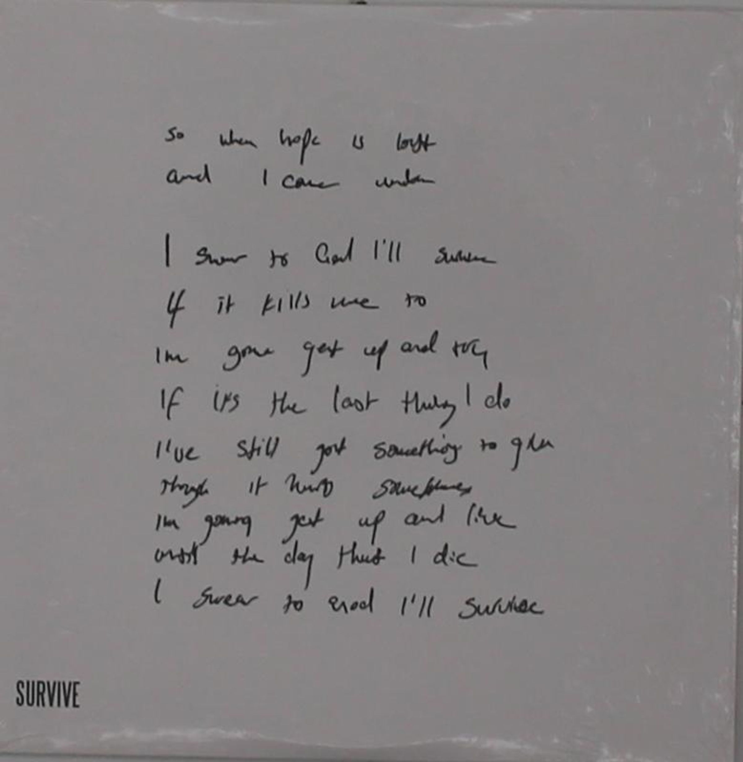 Handgeschriebener Text über Entschlossenheit und Überleben. Unten links steht gedruckt: "SURVIVE"., Maxi-CD