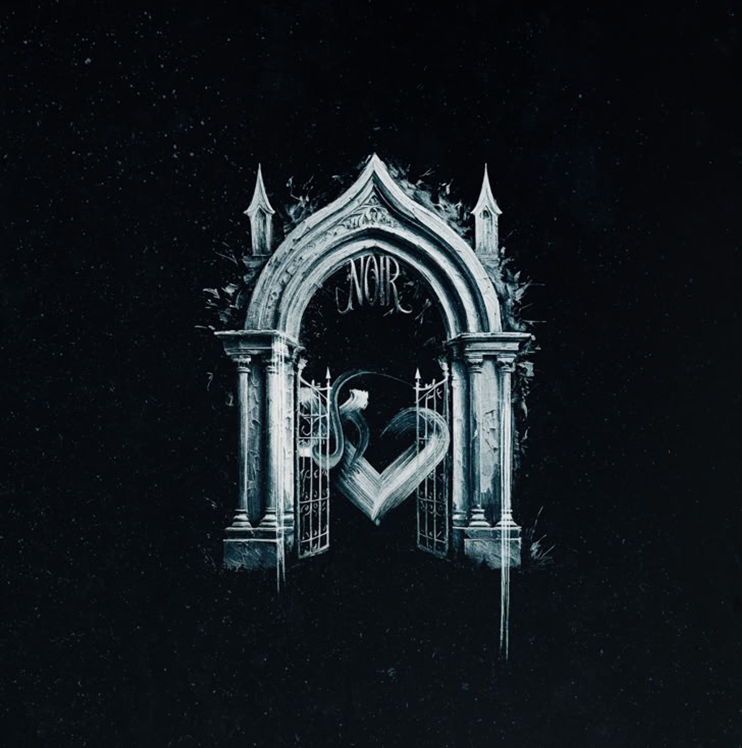 "Vol. 3 Side A" und "VOIR" auf einem gotischen Torbogen. Schallplatte daneben., LP