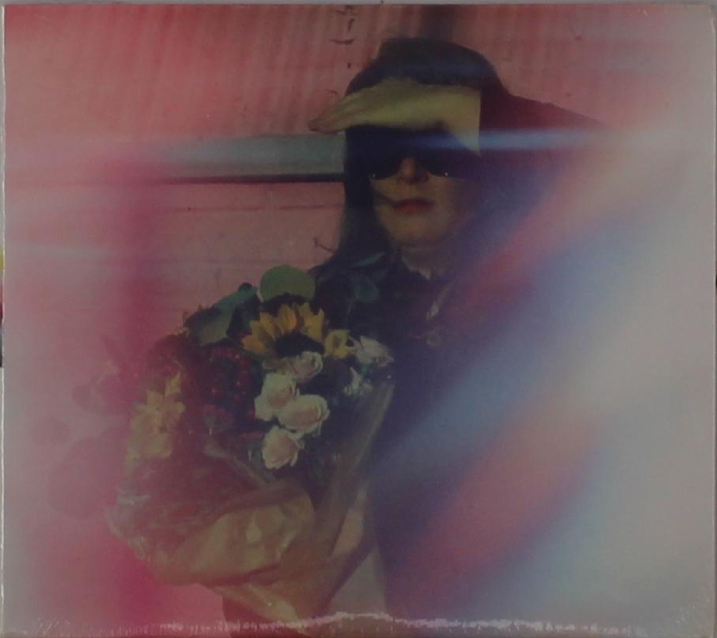Ein Mensch mit Sonnenbrille hält einen Blumenstrauß, umgeben von bunten Lichteffekten., CD
