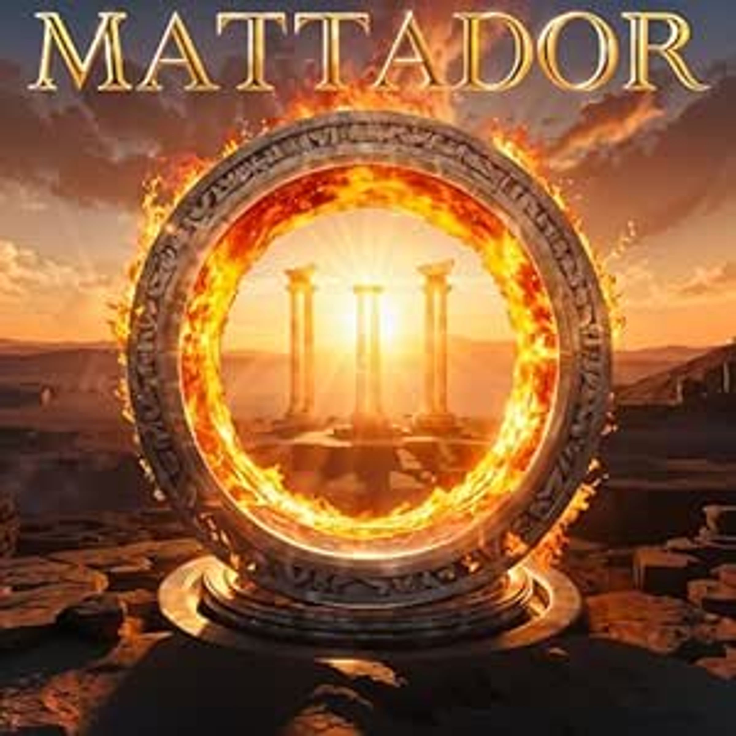Der Text lautet "MATTADOR". Eine flammende Steinscheibe, durch die Sonnenstrahlen auf antike Säulen scheinen., CD