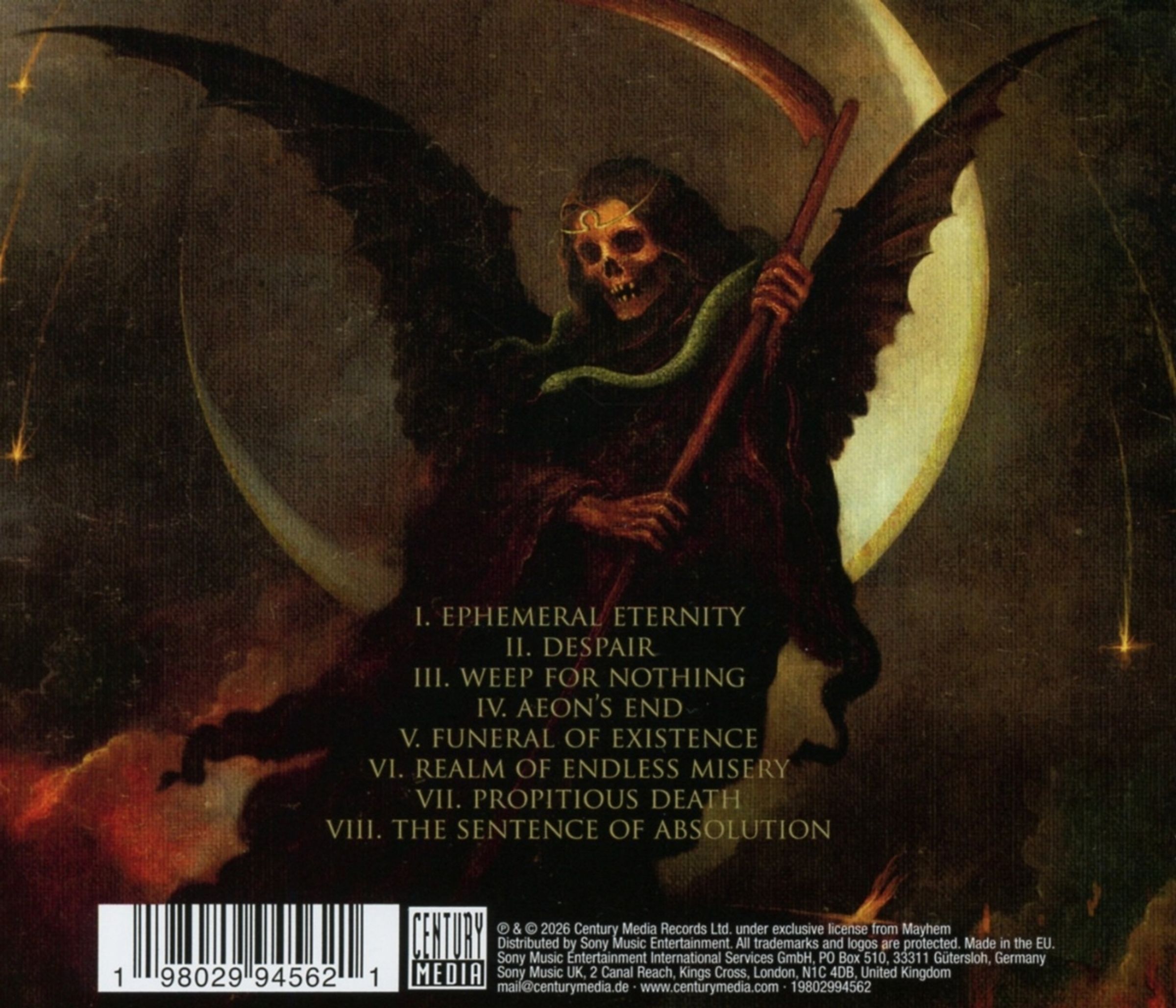 Vom wütenden Chaos von »Despair« und »Funeral of Existence« bis zur düsteren Erhabenheit von »Ephemeral Eternity« und »Aeon's End« zieht jeder Track den Hörer tiefer in ein Ritual des Elends und der Transzendenz hinein. »Propitious Death« und »The Sentence of Absolution« verbinden Brutalität mit einer bedrohlichen Atmosphäre, während »Life Is a Corpse You Drag« und »Sancta Mendacia« keinen Zweifel daran lassen, dass Mayhem nach wie vor unübertroffen darin sind, Verzweiflung in Klang umzusetzen.