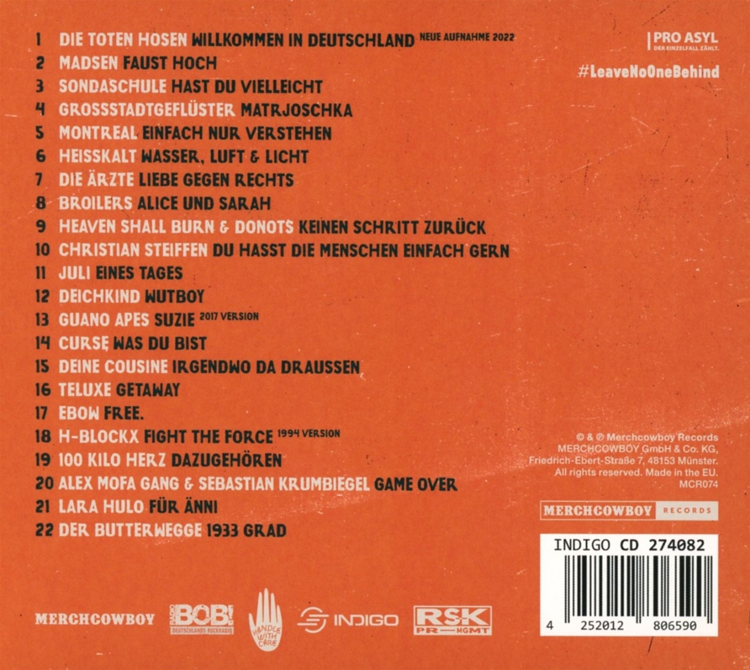 Die Toten Hosen, Die Ärzte, Juli und Deichkind sind nur einige der Künstler aus der alternativen Szene, die sich hier versammeln. Gemeinsam setzt man ein lautes Zeichen gegen Rechts und für Toleranz, wobei sämtliche Einnahmen den Organisationen #LeaveNoOneBehind und PRO ASYL zugutekommen.