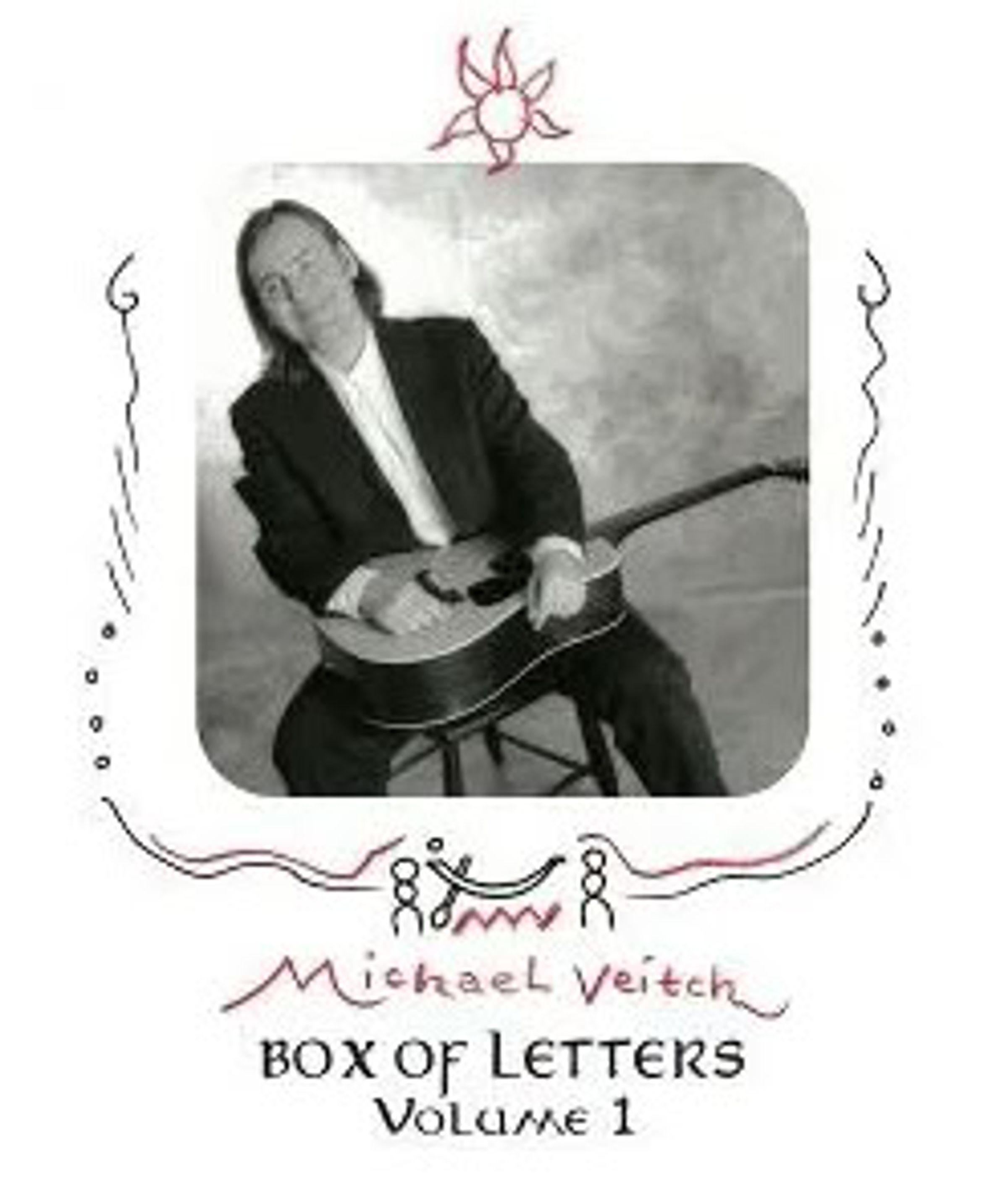 "Michael Veitch, Box of Letters, Volume 1." Ein Mann mit Gitarre sitzt, umrahmt von minimalistischen Illustrationen., 3 CDs