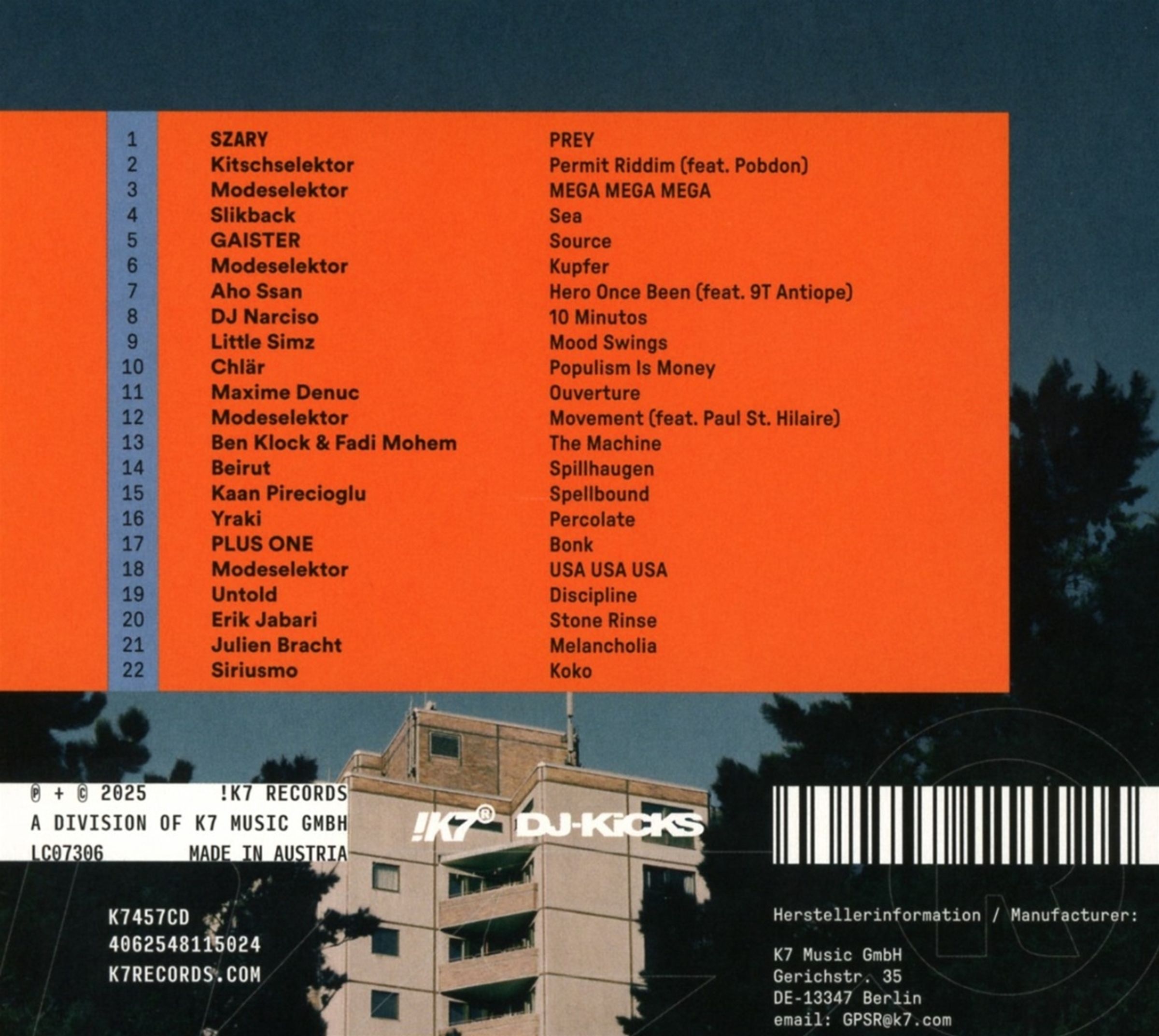Modeselektor, einer der originellsten Acts aus dem Berliner Techno-Underground, befindet sich in einer Phase des Wandels. Anfang des Jahres zog das Duo – alias Gernot Bronsert und Sebastian Szary – nach vielen Jahren über dem berüchtigten KitKatClub in Mitte in ein neues Studio. Nach über drei Jahrzehnten beeindruckender Arbeit – darunter Kultlabels, hochgelobte Alben und EPs sowie bahnbrechende Veröffentlichungen als Teil von Moderat – sind sie immer noch auf dem Höhepunkt ihrer Karriere und hungrig nach der neuesten elektronischen Musik aus aller Welt. Im Jahr 2025, im selben Jahr, in dem DJ-Kicks und !K7 Records ihr 30- bzw. 40-jähriges Jubiläum feiern, wird das Duo endlich seine Edition für die renommierte Mix-Reihe veröffentlichen.