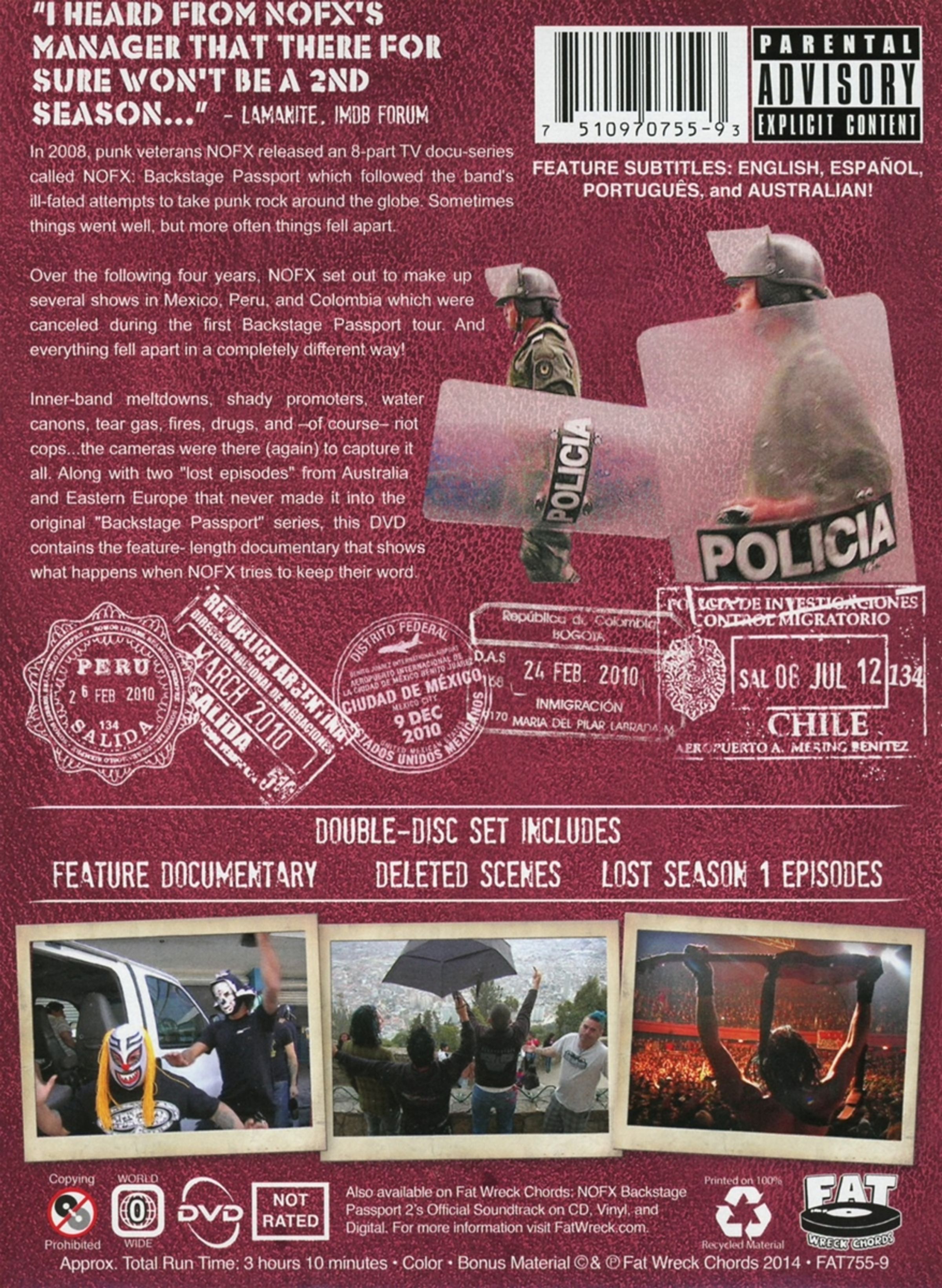 Begleitet nun in »Backstage Passport 2« die Band NOFX durch Länder wie Peru, Kolumbien, Mexico, Australien, Ost-Europa usw. Erlebt mit welchen einheimischen Bräuchen NOFX zu kämpfen hatte ... dubiose Promoter, Tränengas, Aufstände, Erdbeben und vieles mehr!