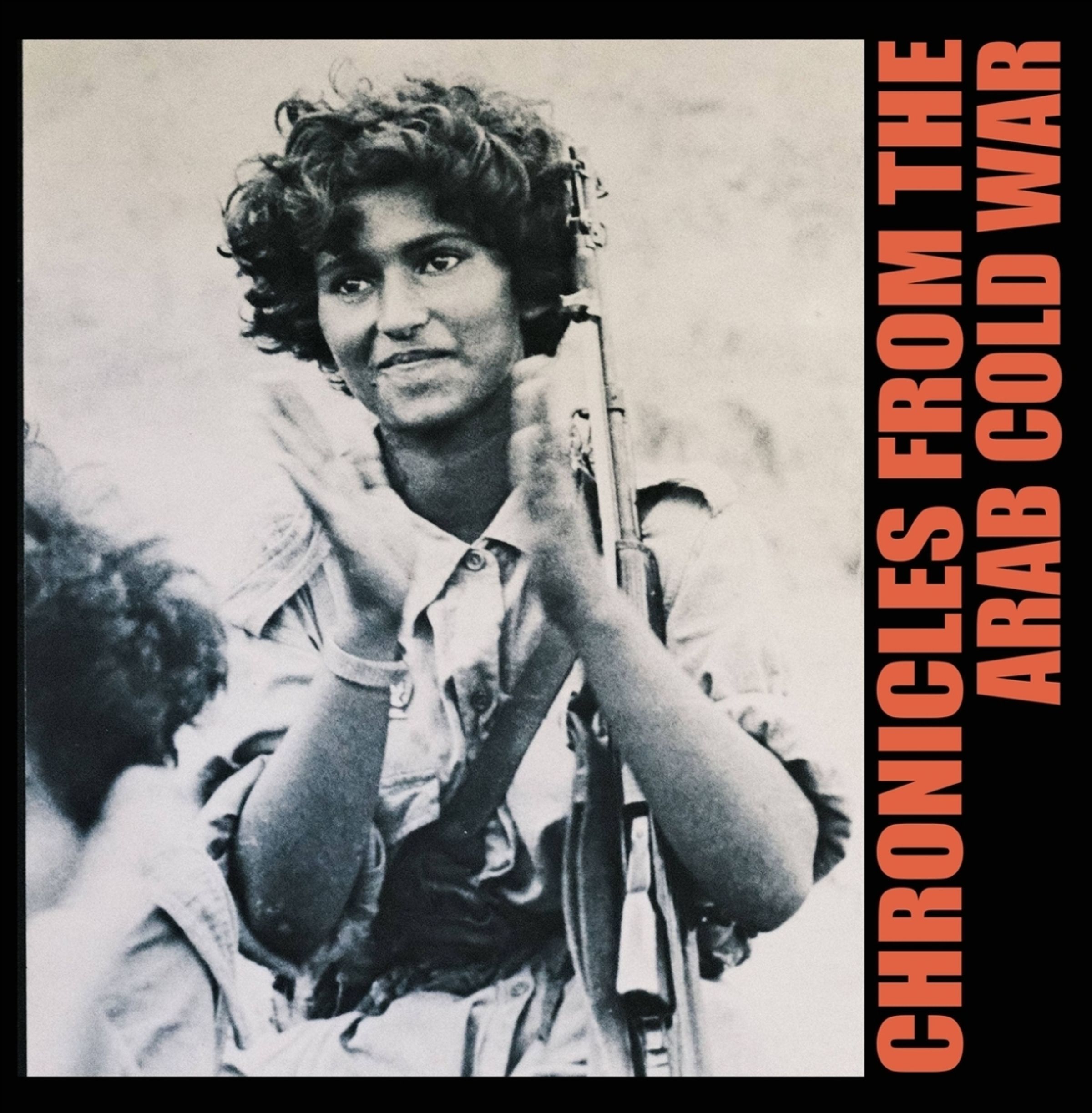 Text: "CHRONICLES FROM THE ARAB COLD WAR". Junge Person in Uniform mit lockigem Haar, hält ein Gewehr, wirkt bestimmt., LP