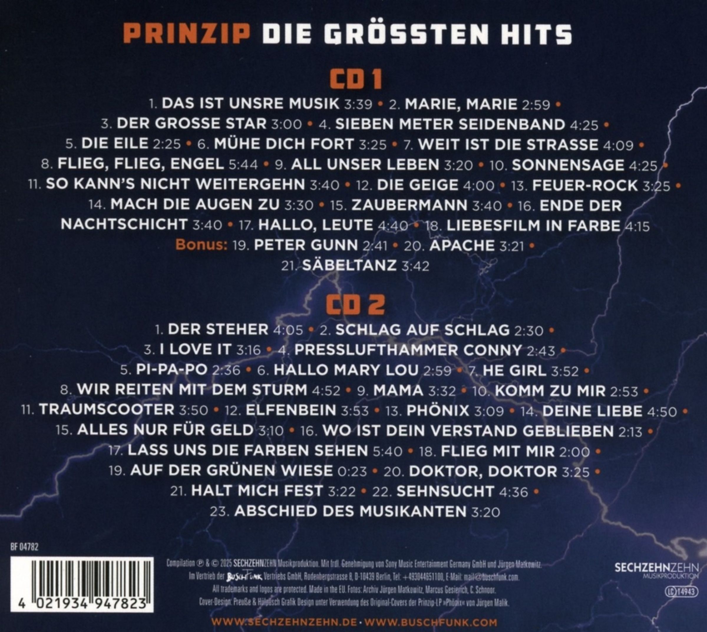 Auf Wunsch vieler Fans und den Reaktionen in den einschlägigen Social – Media - Kanälen werden wir am 24. Oktober eine Doppel CD mit den größten Hits von Prinzip veröffentlichen – basierend auf ihren vier Amiga LPs mit 44 Titeln, die Gründer und Mastermind der Band Jürgen Matkowitz selbst ausgewählt hat. Mit 7 bislang unveröffentlichten Titeln