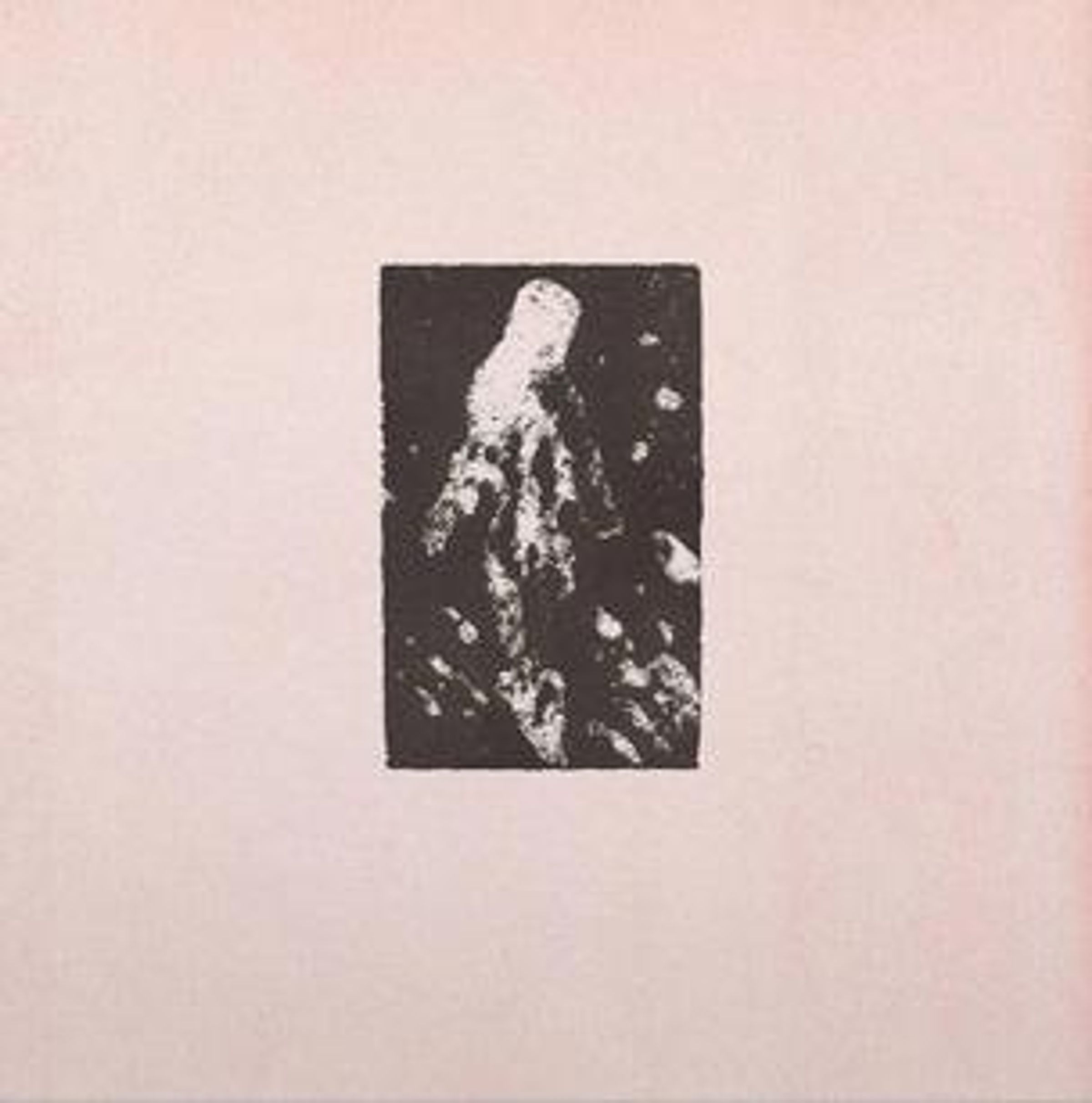 Ein rechteckiges, abstraktes Schwarz-Weiß-Bild mit einer zentralen, schemenhaften Gestalt auf blassem Hintergrund., LP