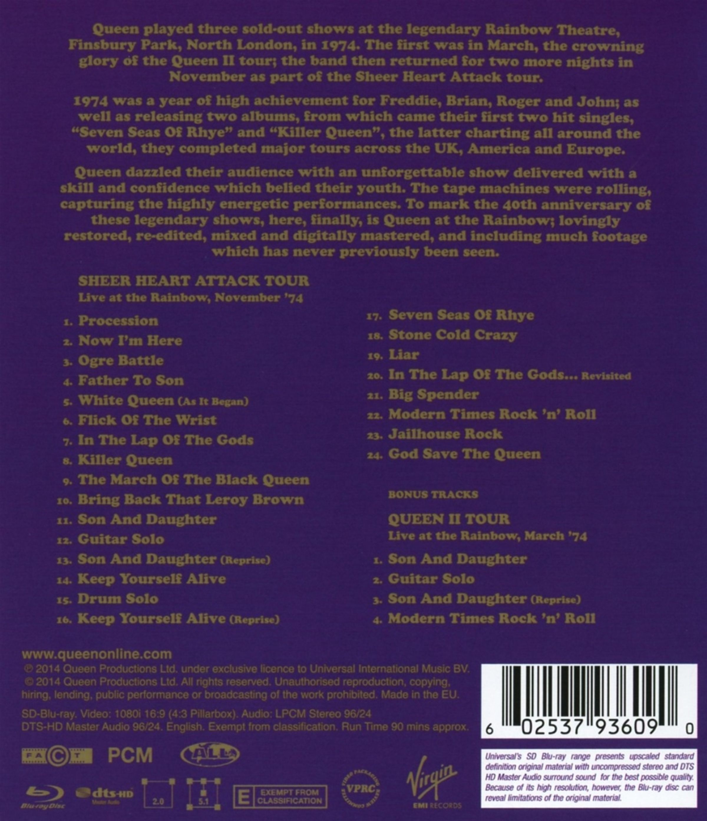 Als Queen am 31. März 1974 ihr Konzert im legendären Rainbow Club in London vor ca. 3000 Leuten gaben, war die Band noch recht unbekannt. Das änderte sich allerdings kurz nach dem Auftritt, und so gaben sie im November desselben Jahres noch eine weitere Show. Mit ihrer verblüffenden Bühnenpräsenz, ihrem unglaublich originellen Repertoire von melodisch und harmonisch ausgefeilter Musik und in jeder Hinsicht perfektionistischen Performance, imponierten Queen dem Publikum mit dieser unvergesslichen Show.