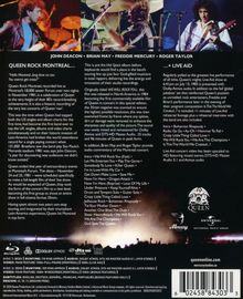 Die Blu-ray- und 4K-Versionen enthalten jeweils auf der ersten Disc "Rock Montreal" im Vollbildformat, erstmals in hochskaliertem HD mit Dolby Atmos-Ton. Die zweite Disc enthält das Konzert in Montreal im Breitbildformat und ein Featurette mit einem Blick hinter die Kulissen, das Queen bei den Proben für "Live Aid" zeigt, unterbrochen von einem Interview mit der Band, das kurz vor "Live Aid" aufgenommen wurde.