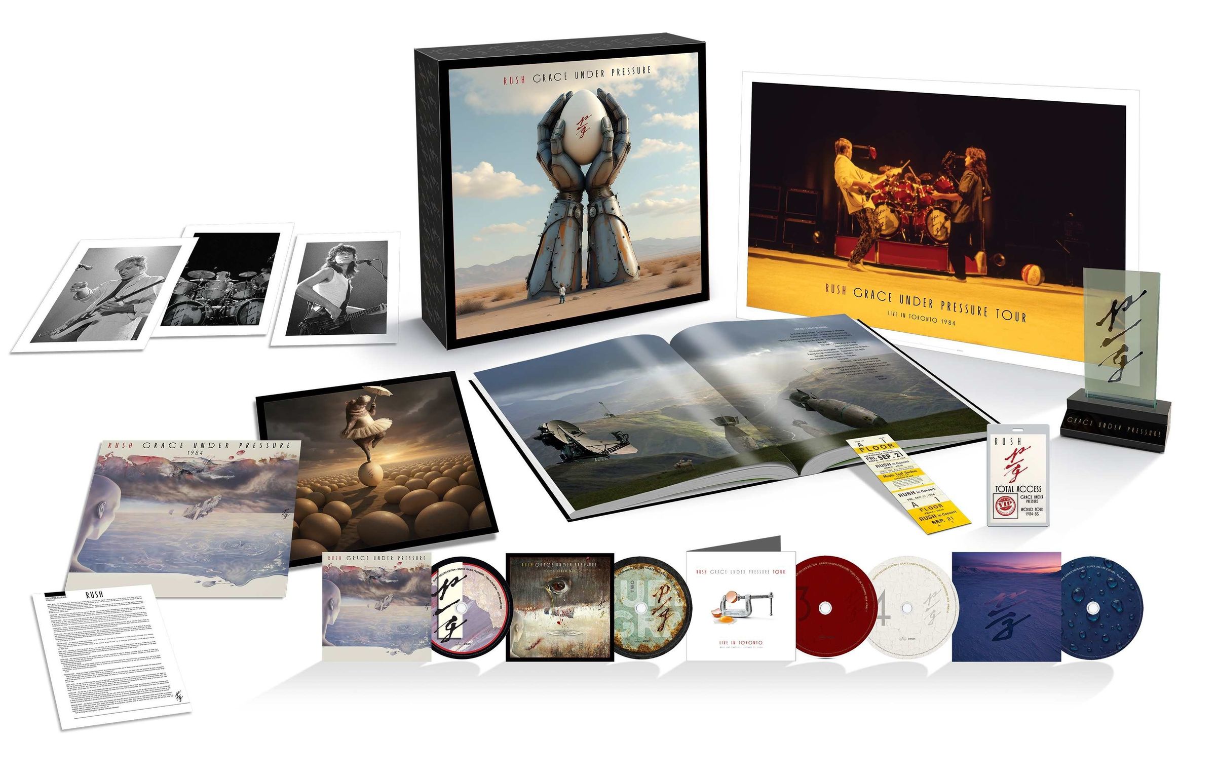 Die GUP-CD-Box enthält 4 CDs und eine Blu-ray. CD1 enthält den neu gemasterten Stereo-Mix von 1984. CD2 enthält Terry Browns brandneuen Stereo-Mix des Albums. Das Album "Grace Under Pressure Tour: Live in Toronto 1984" befindet sich auf den CDs 3 und 4. Die Blu-ray enthält außerdem das Konzertvideo, das GUP-Studioalbum, neu abgemischt in Atmos & 5.1, Terry Browns neuen Album-Mix und 4 Musikvideos. Geddy Lee verfasste die Liner Notes und Hugh Symes brillante neue Illustrationen sind im Buch abgebildet.