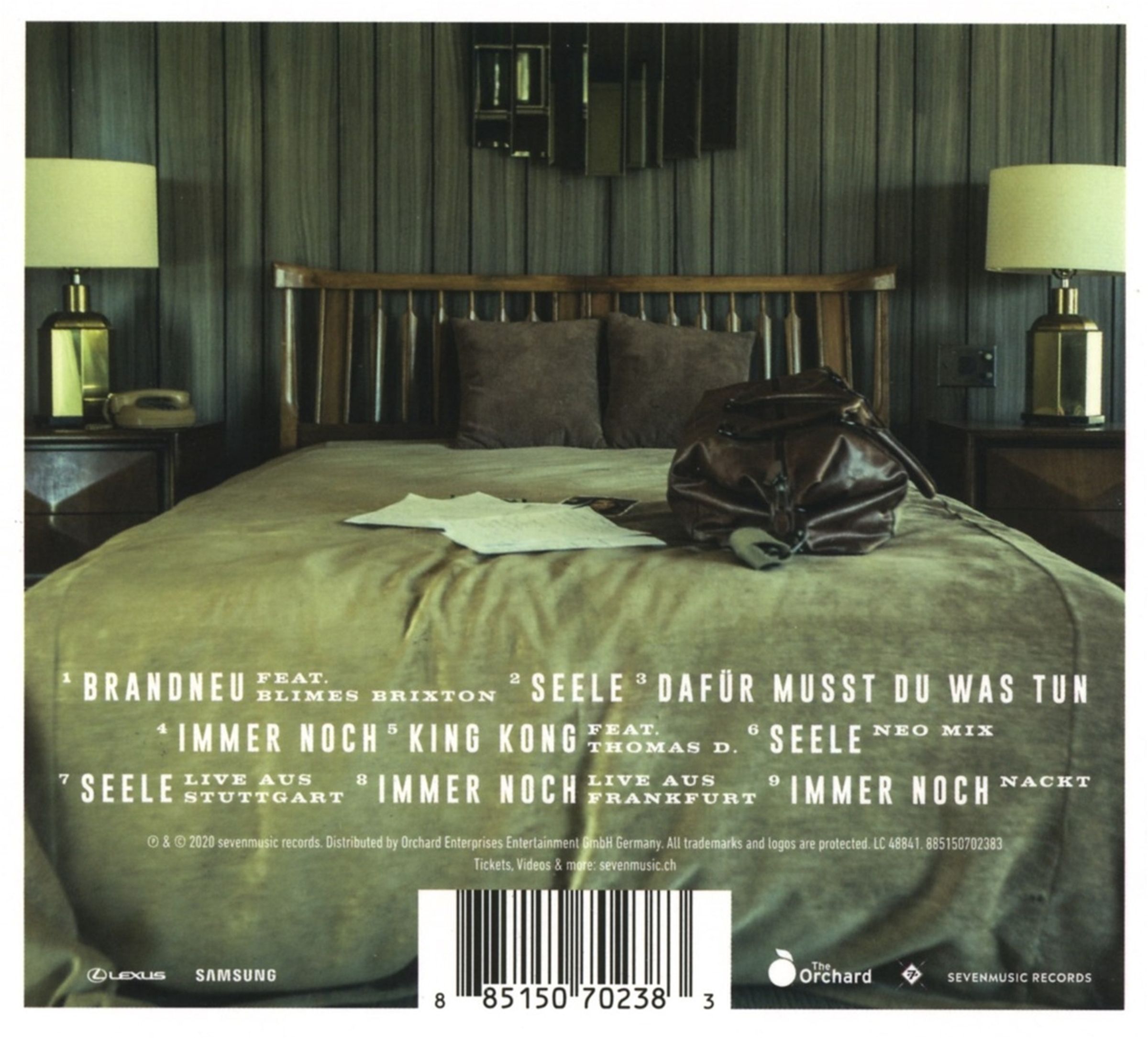 Mit »Brandneu« veröffentlicht Seven erstmalig eigene deutschsprachige Songs: Das »Halbum« bringt fünf neue Songs und vier Bonustracks (inkl. zwei Live-Versionen der »Soulmate Tour«), während er parallel als Host der neuen Reihe »Sing meinen Song – das Schweizer Tauschkonzert« zu sehen ist und im Anschluss mit sechsköpfiger Band auf »Brandneu Tour« geht.