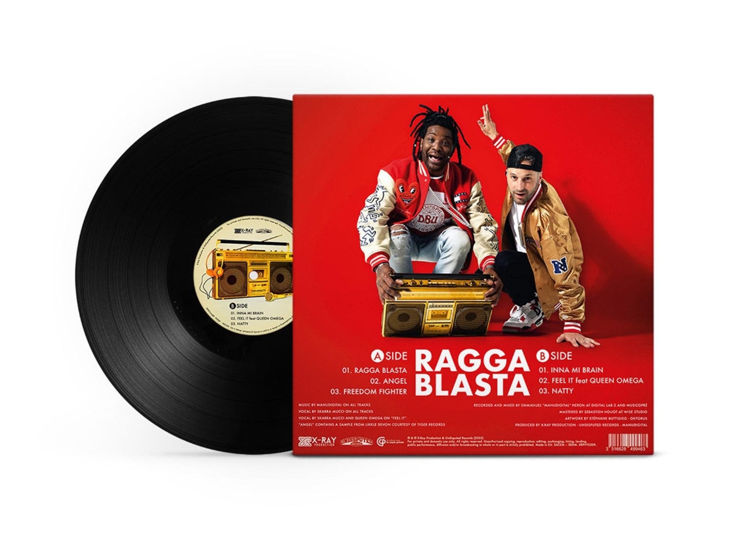 »Ragga Blasta« ist die brandneue Koop-12"-EP der beiden französischen Reggae- und Dancehall-Ikonen Skarra Mucci und Manudigital mit fünf gemeinsamen Tracks auf X-Ray Production.