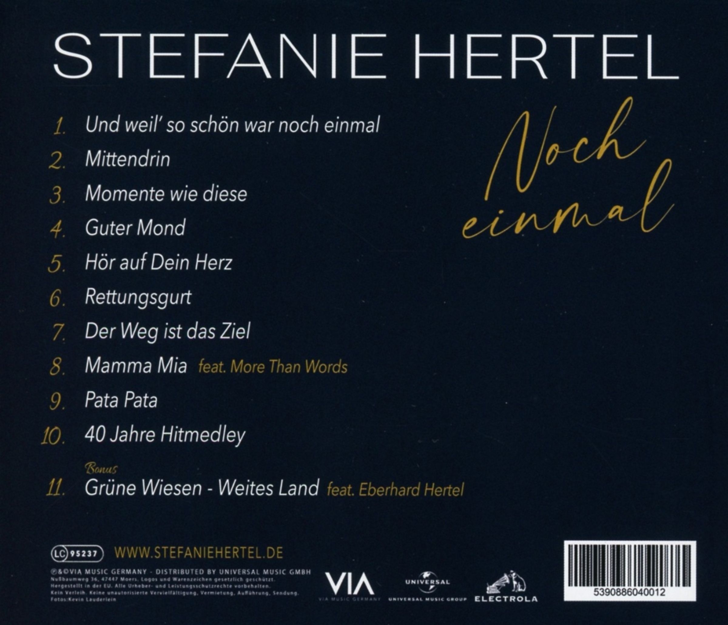 Mit »Noch einmal« feiert Stefanie Hertel ihr 40-jähriges Bühnenjubiläum – und liefert dabei ein Versprechen für alles, was noch kommt. Dieses Album ist eine musikalische Reise durch Vergangenheit, Gegenwart und Zukunft, ein Kaleidoskop voller Emotionen, Hits und neuer Entdeckungen.