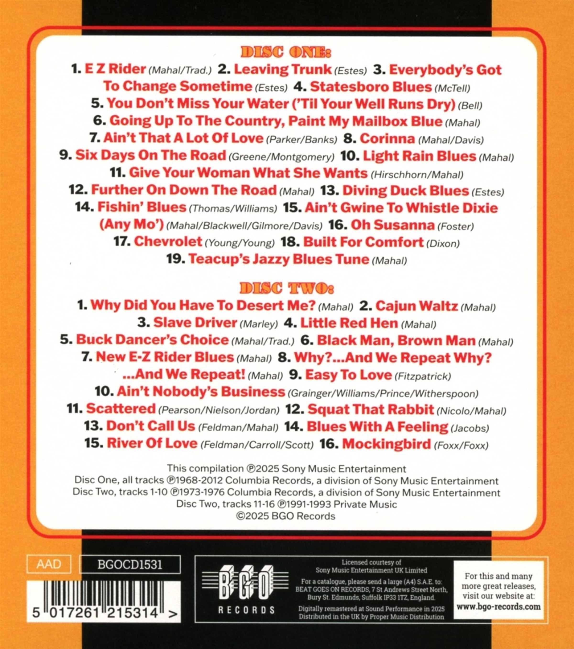 Taj Mahal: The Columbia & Private Music As & Bs auf 2 CDs