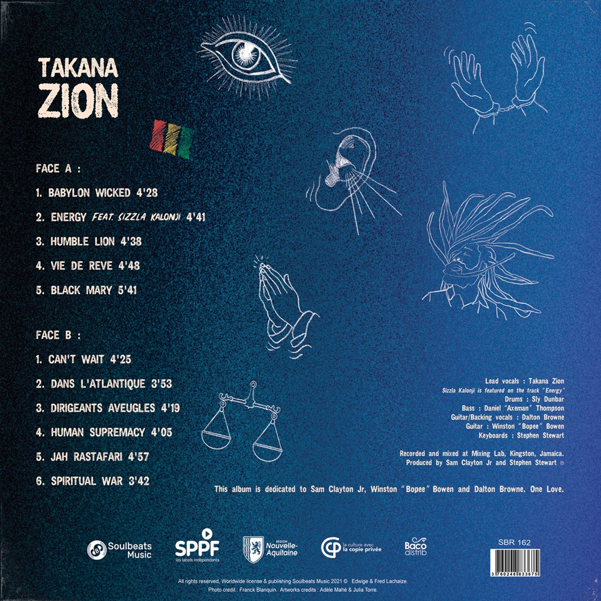 Die langjährige Freundschaft zu SIZZLA KALON JI, als dessen afrikanische Inkarnation TAKANA ZION oft bezeichnet wird, hielt die Produktion zusammen und gipfelte in dem gemeinsamen Song „Energy“, während LOWELL ‚SLY‘ DUNBAR (Schlagzeug) und DANNY ‚AXEMAN‘ THOMPSON (Bass) das verlässliche Fundament boten. Nur mit „Jah Rastafari“ kam TAKANA ZION auf Jamaica an, die restlichen zehn Songs entstanden erst „on location“. Mit „Human Supremacy“, dessen Titel nicht die Überlegenheit, sondern die Verantwortung der Menschheit adressiert, erscheint erneut ein wunderbares Roots-Werk, dass an den spirituell-sozialkritischen Geist der MARLEY-Ära anknüpft.