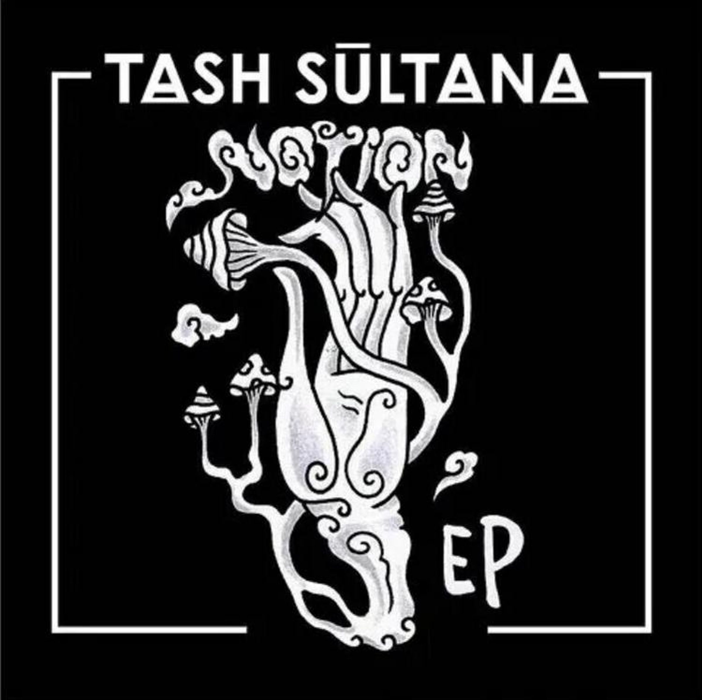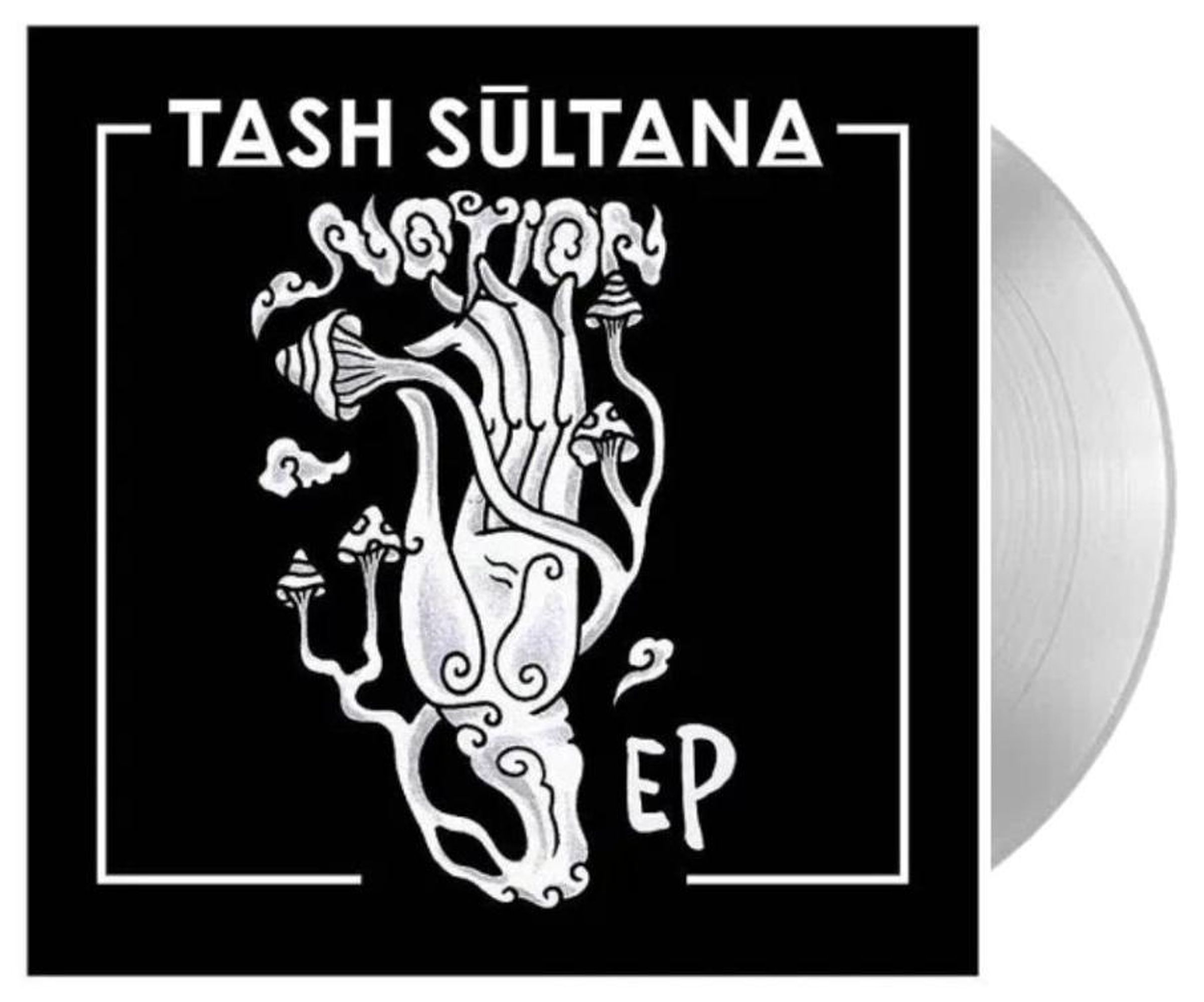 "TASH SULTANA" und "NOTION EP" sind in Großbuchstaben. Eine weiße, verschnörkelte Hand mit Pilzen ist in der Mitte., LP