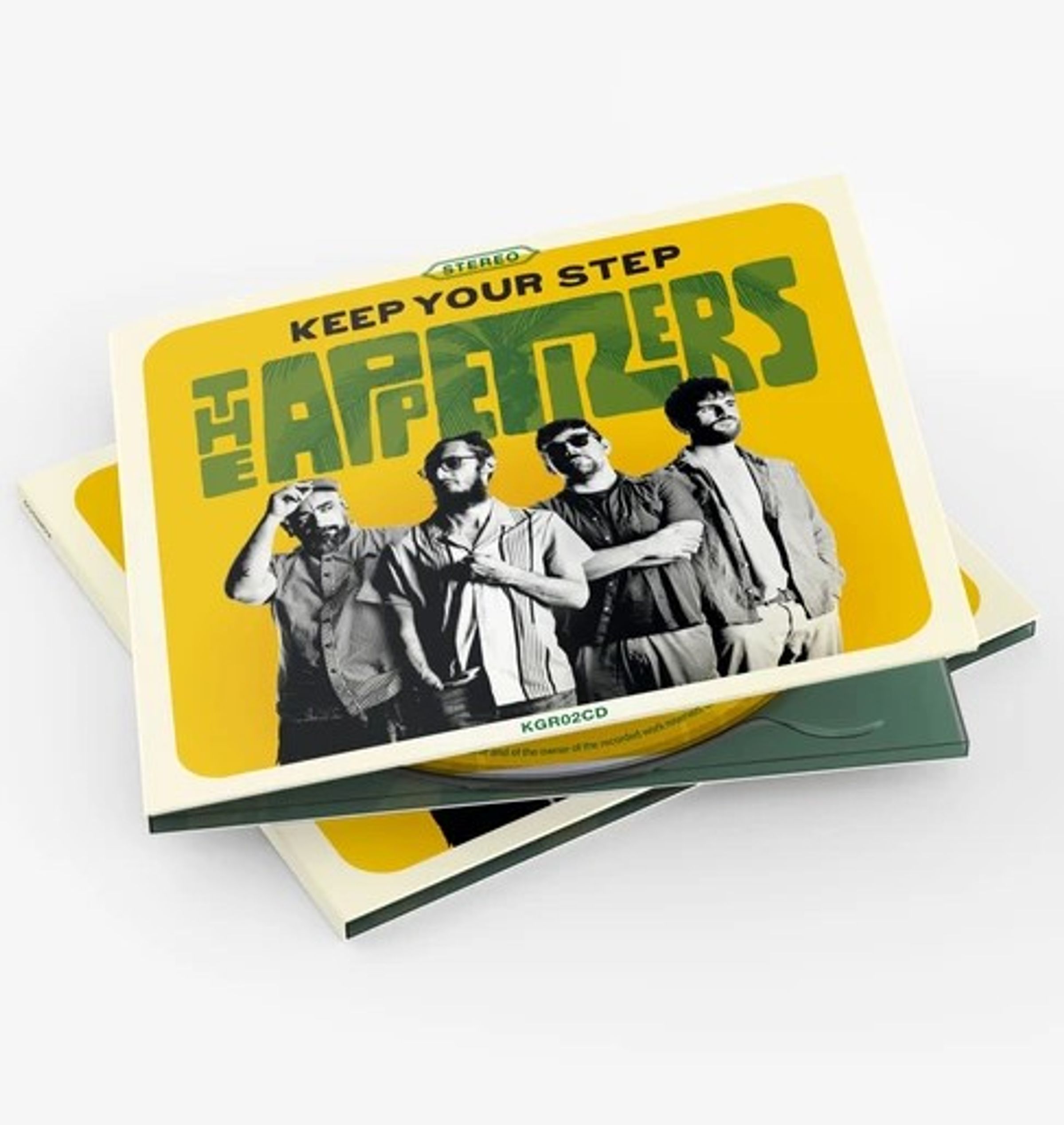 "KEEP YOUR STEP THE APPETIZERS" in fetten Buchstaben, darunter vier Männer in einem Bandfoto auf einem CD-Cover., CD