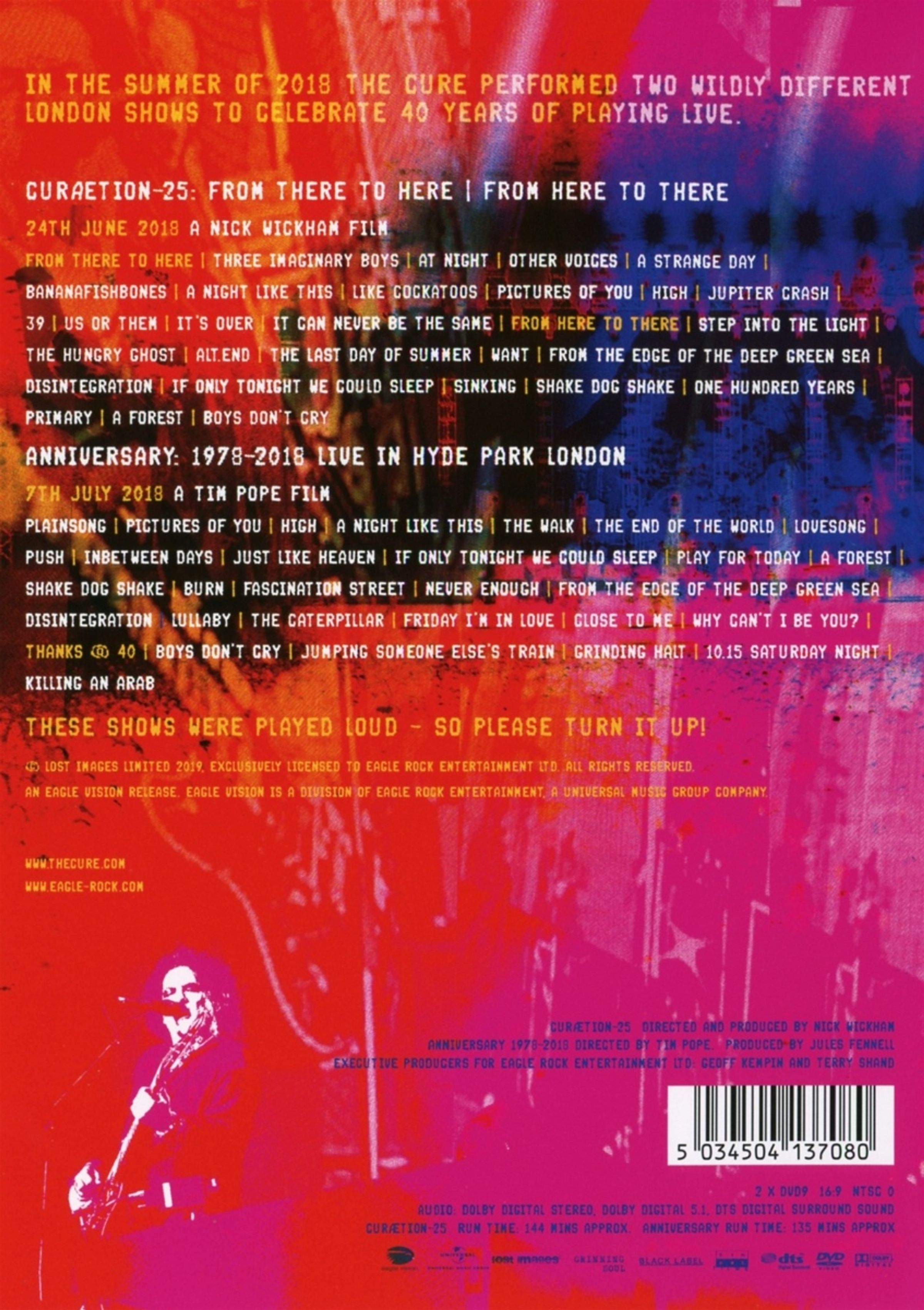 Im Jahr 2018 führte The Cure zwei historische Shows auf, die eine 40-jährige Karriere feierten. Am 18. Oktober 2019 präsentiert Eagle Rock Entertainment zwei Sonderaufführungen, mit denen sie an diesen Meilenstein erinnern. 40 LIVE - CURÆTION-25 + ANNIVERSARY erscheint in einer 10" Deluxe Box (2Blu-ray+4CD oder 2DVD+4CD, jeweils mit 40-seitigem Buch), in Hardback 2Blu-ray oder 2DVD Book (mit 16-seitigem Booklet) erscheinen.