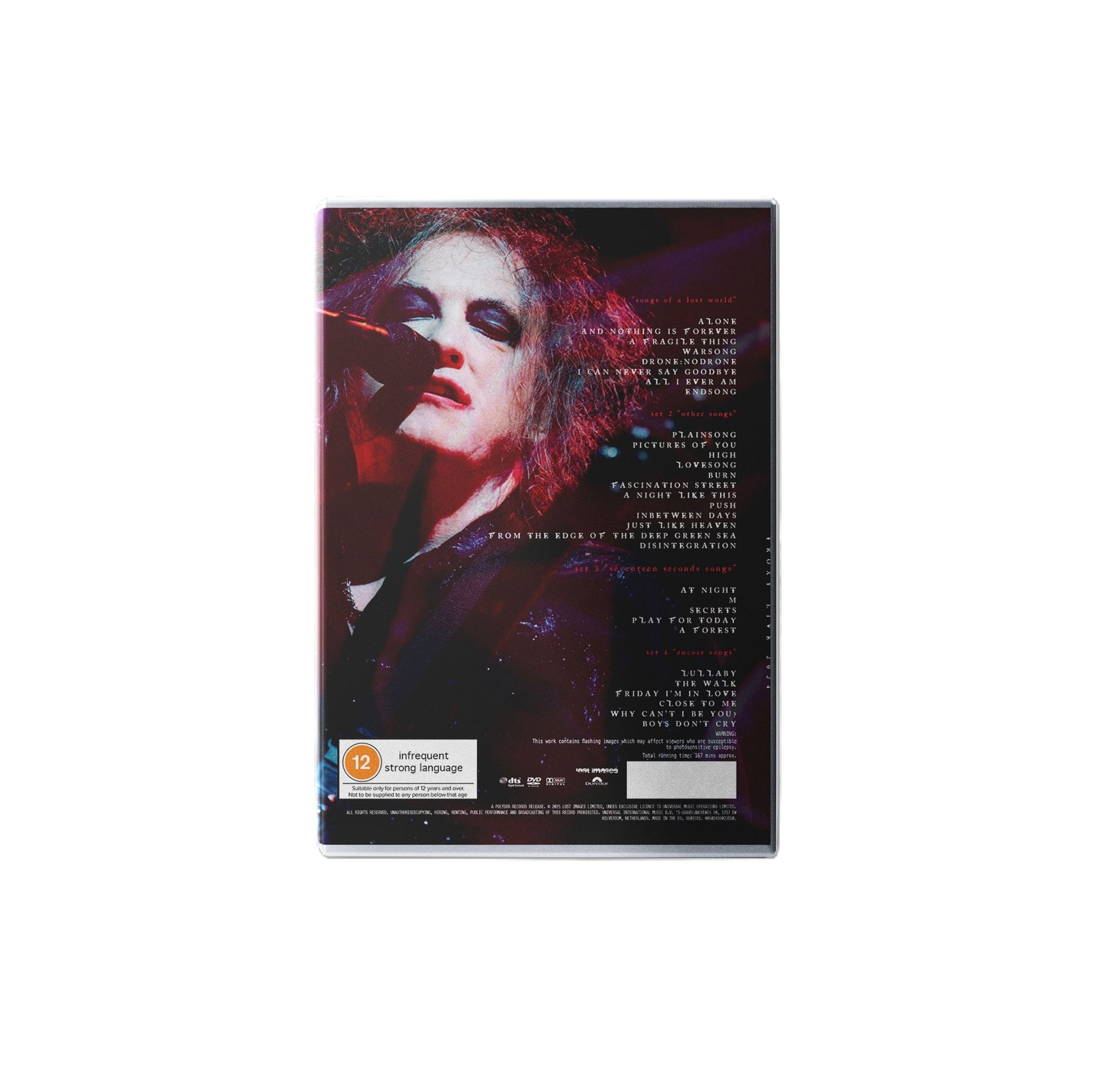 Die britische Pop-/Rock-/Wave-/Gothic-Band The Cure meldet sich mit einem spektakulären Live-Produkt zurück: "The Cure: The Show Of A Lost World: Troxy London 2024", aufgenommen während ihrer ausverkauften Show im legendären Londoner "Troxy" im vergangenen Jahr, erscheint jetzt in zwei hochwertigen Formaten – 1DVD und 1Blu-ray.