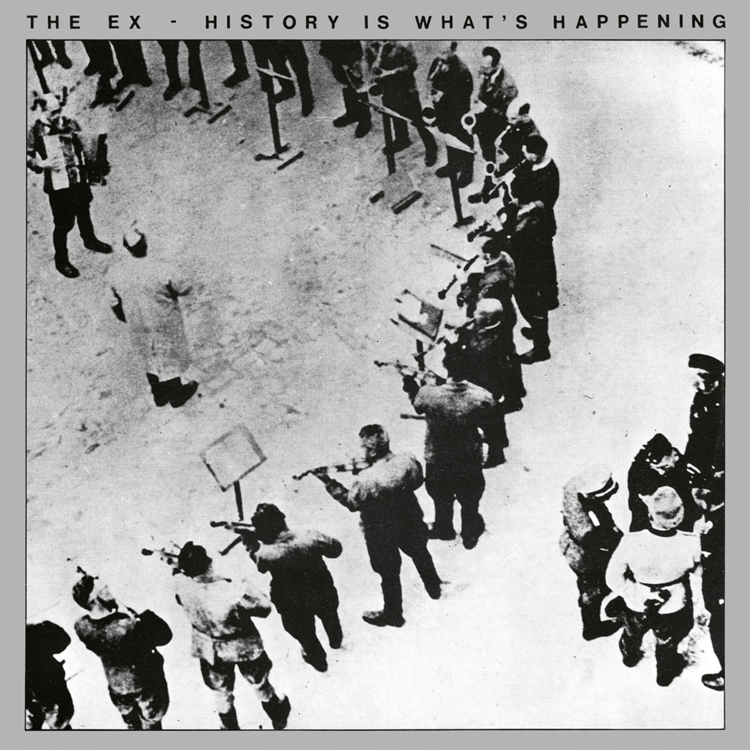 »20 short songs, and this music is not pogo, but, hm, rather unusual. A signpost diversion from punkrock.« HISTORY IS WHAT'S HAPPENING (EX008) Recorded in 1982 at Joke's Koeienverhuurbedrijf, Schellingwoude, Netherlands. Produced by Dolf Planteijdt. THE EX: Terrie (guitar), G. W. Sok (vocals), Bas (bass), Wim (drums).