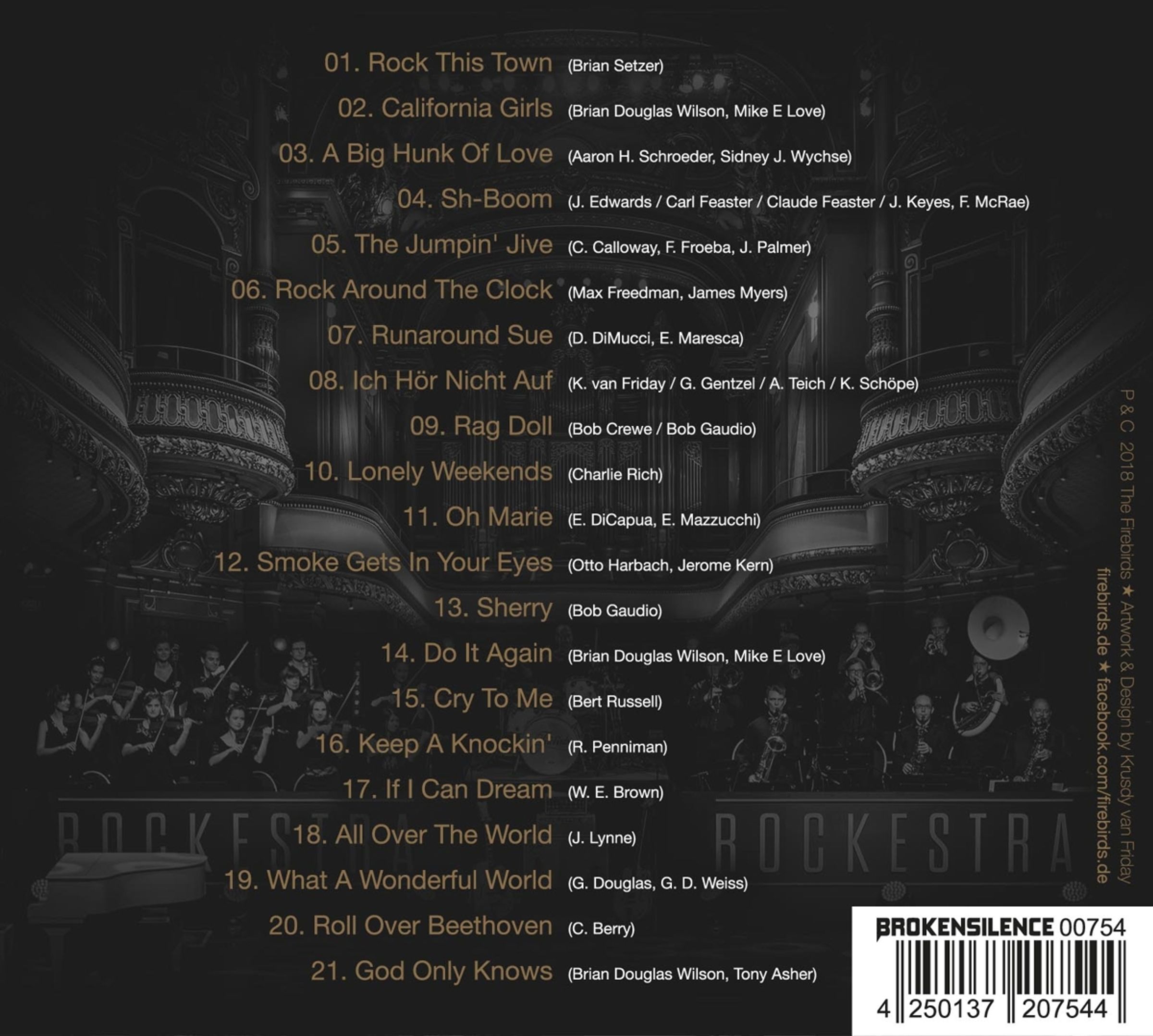 Die Orchestertour wurde ein riesiger Erfolg, und beim Berliner Konzert im Admiralspalast wurden 21 Highlights der FIREBIRDS, u. a. Songs von ELVIS PRESLEY, BILL HALEY, LITTLE RICHARD, CHUCK BERRY, JERRY LEE LEWIS und den BEACH BOYS in der einmalig arrangierten Orchesterversion mitgeschnitten. Die CD lässt die einmalige Magie dieses Abends mit über 75 Minuten Gesamtspielzeit wieder auferstehen.