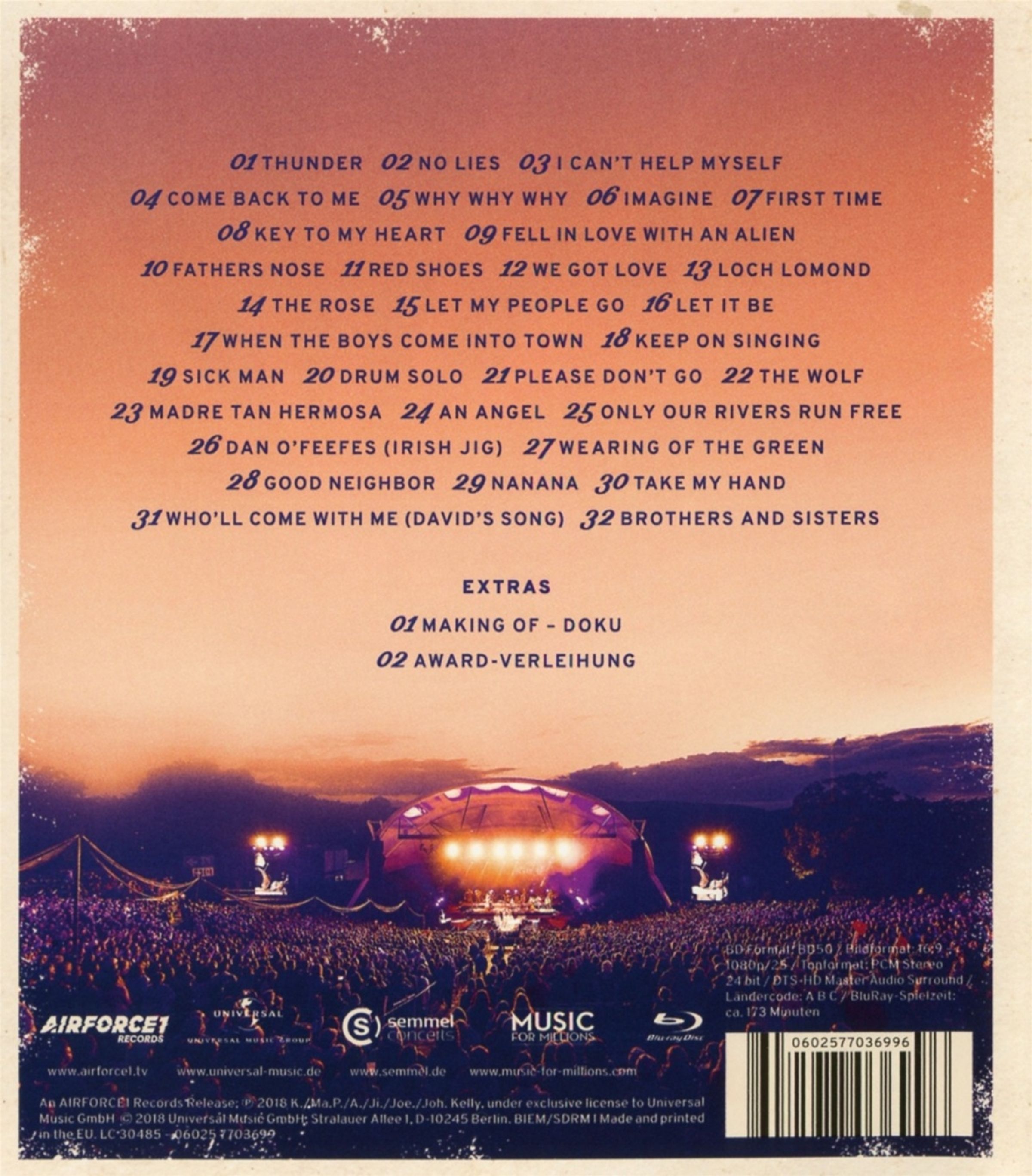 Neue und alte Hits und einige Überraschungen warteten auf die rund 30.000 Fans, zum Beispiel »Why Why Why«, »Fell In Love With An Alien«, »We Got Love« oder »Let It Be«. Das gesamte Tracklisting von »We Got Love – Live At Loreley« finden Sie im Folgenden.